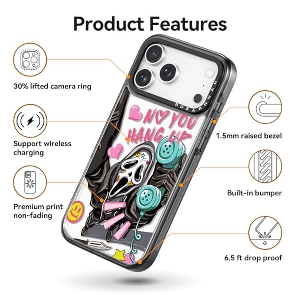 Rosarnnah Case | iPhone 17 Pro Max Shockproof 6.6ft Drop Protection | Unique Halloween Horror Design