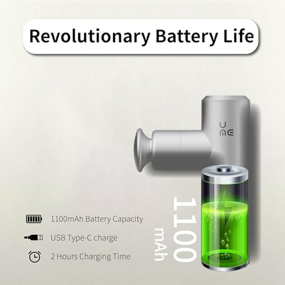 - The S1 Mini Massage Gun features 4 hours of long battery life, allowing for extended use without interruption, making it perfect for gym, office, or travel