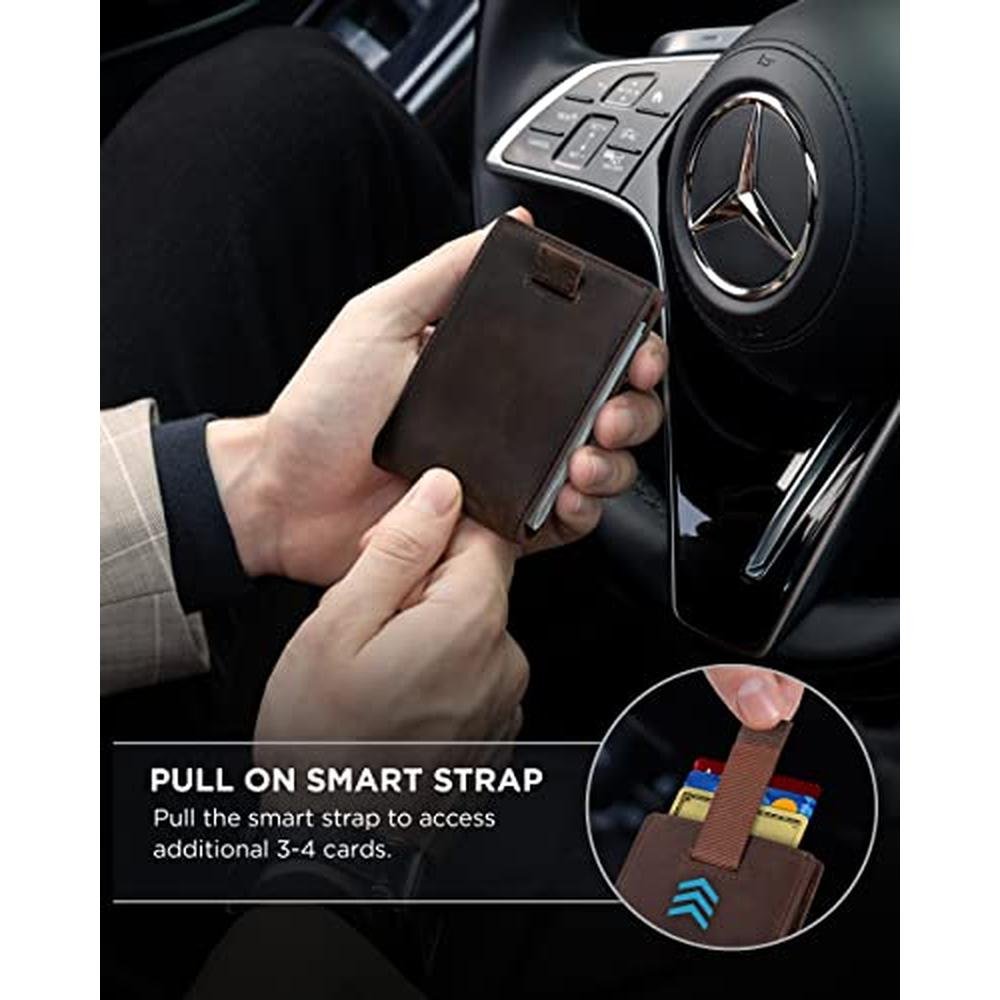 - SLIM AND STYLISH - Made with the Finest Full Grain leather, Top Grain Leather and Vegan Leather. Designed Quick Access ID Windows, Best Fits 6-8 cards plus US bills with no bulk, and a minimal Pull-tab design to reduce bulk - Wallet Size: 3.9" in. x 2.85" in. 0.5" in.