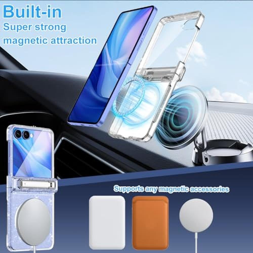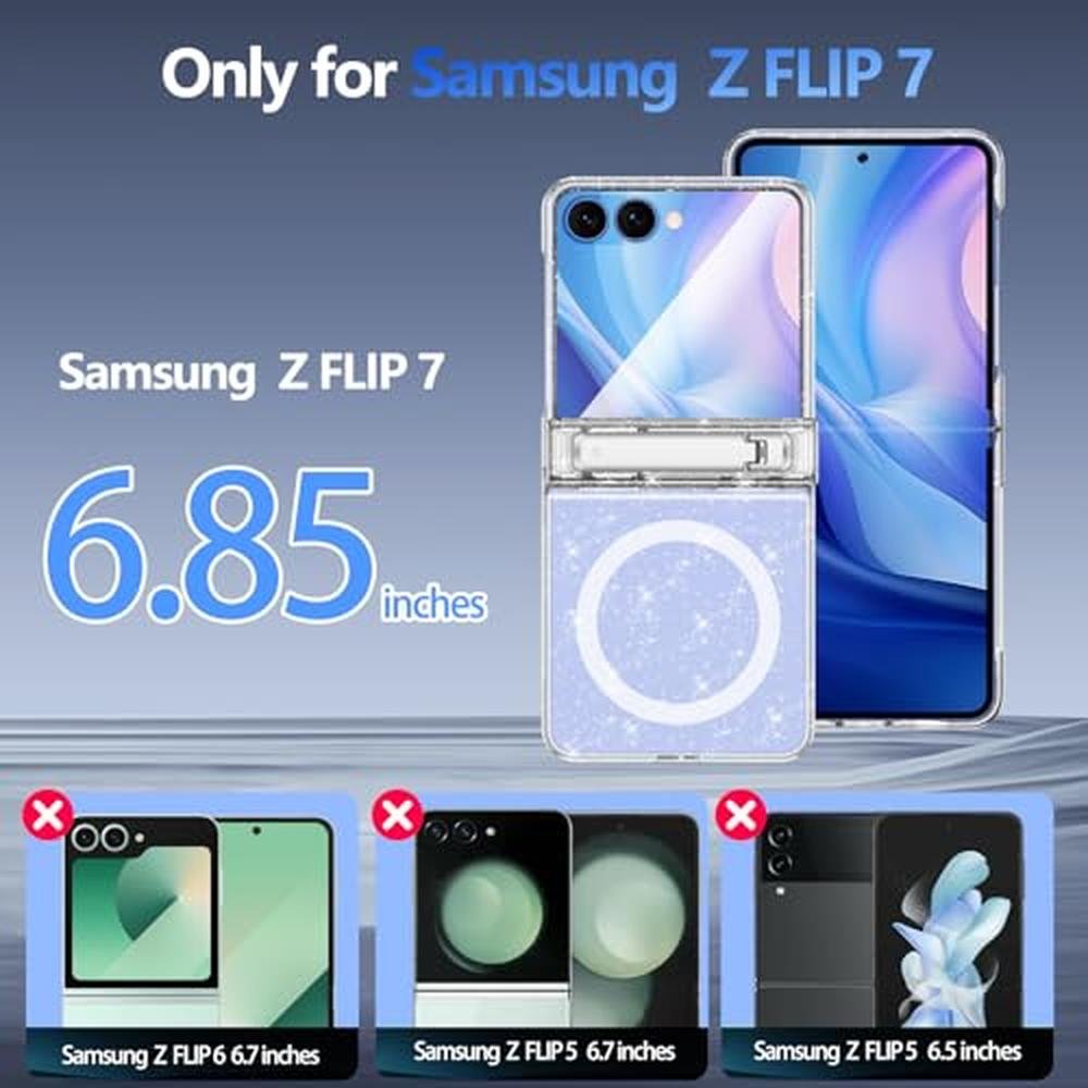 Galaxy Flip 7 Case | Samsung Z Flip 7 Ultra-Slim Clear Cover | MagSafe Compatible with Built-in Screen Protector and Kickstand
