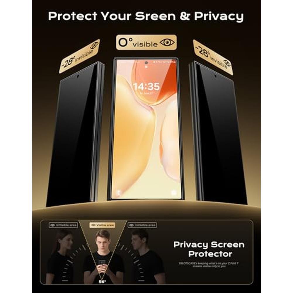 Indulge in unparalleled privacy and protection with the SSLOTSCASE for Samsung Galaxy Z Fold 7, featuring a cutting-edge fold privacy screen protector and camera lens protector. Designed to provide maximum security against prying eyes, this foldable privacy screen is made with high-quality, 9H+ durable tempered glass that ensures 8FT shatterproof protection. Elevate your mobile experience while maintaining your personal privacy, whether you're using your device indoors or outdoors. The fold privacy screen protector is specifically designed for the Samsung Galaxy Z Fold 7 2025 model, providing a precise fit and effortless installation. With its advanced anti-spy features, you can confidently use your device in any setting.