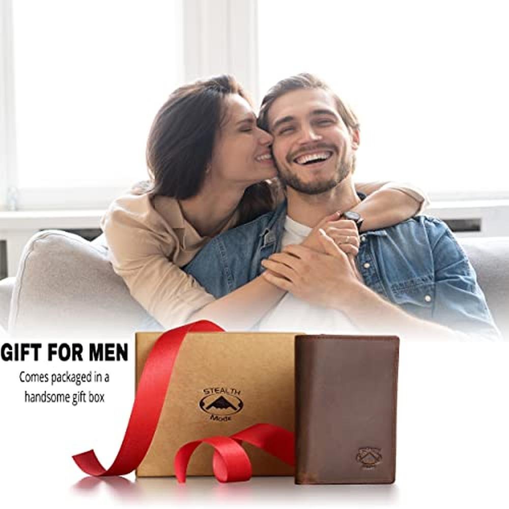 Stealth Mode Trifold Leather Wallet for Men with RFID Blocking (Brown)