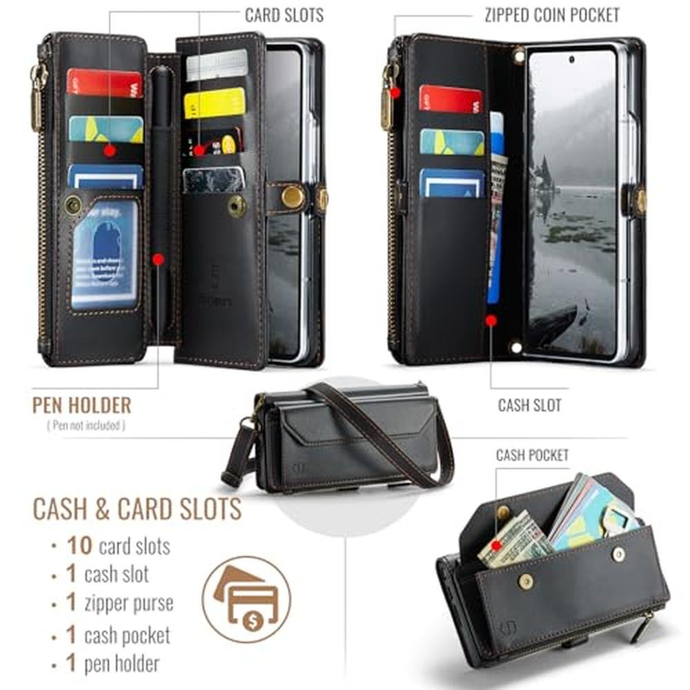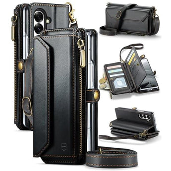 Experience the epitome of protection and elegance with the Strapurs Wallet Case, meticulously crafted for the Samsung Galaxy Z Fold 7. This superior accessory boasts a soft PU leather construction, a convenient zipper pocket, and a shoulder strap for effortless carrying, redefining the way you carry your device. The integrated RFID blocking card holder slot ensures your sensitive information remains secure from unauthorized access, providing an additional layer of security. With its sleek black design, this Galaxy Z Fold 7 case is not only functional but also a sophisticated addition to your daily essentials, perfect for those seeking a premium-grade phone case. Whether you're looking for a case that embodies luxury and protection, the Strapurs Wallet Case is the ultimate choice, offering a unique blend of style, security, and functionality.
