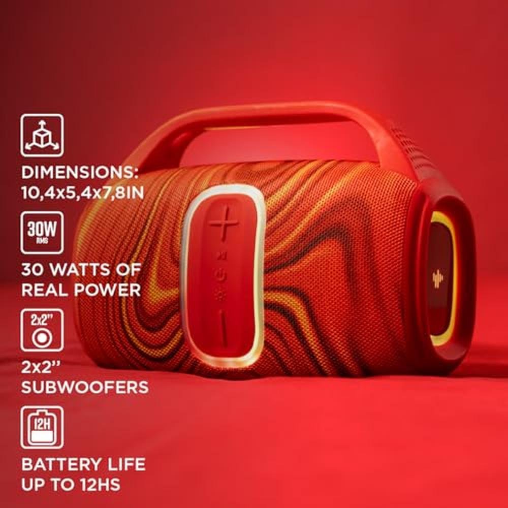 Stromberg - Groove Portable Bluetooth Speaker, 30W Power, 12-Hour Playtime, AUX Compatible - Red