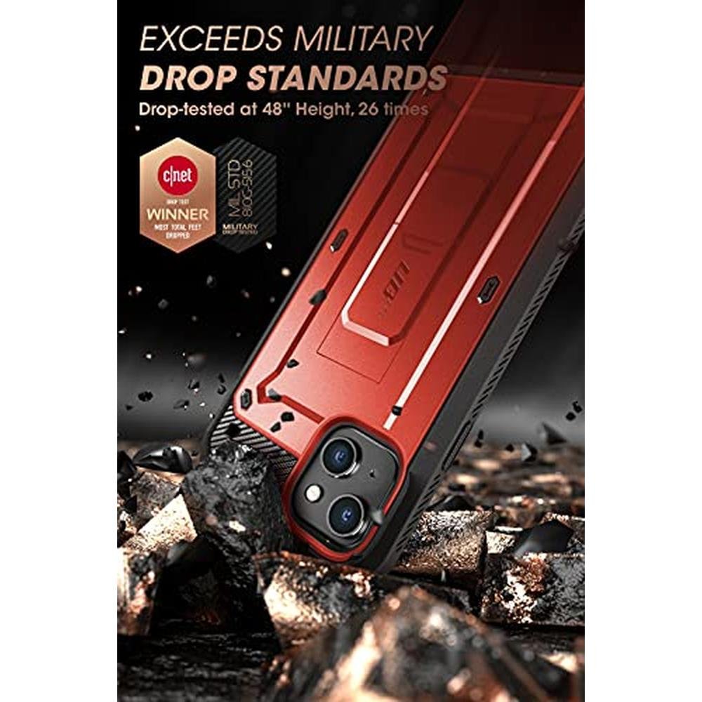 SUPCASE for iPhone 13 Case with Stand & Belt-Clip (Unicorn Beetle Pro), [Built-in Screen Protector] [Military-Grade Drop Protection] Heavy Duty Rugged Kickstand Phone Case for iPhone 13, Ruddy