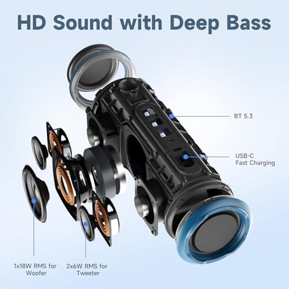 • 30W HD Sound with Deep Bass:Powerful audio with crisp highs and punchy bass, delivering room-filling sound. Ideal for outdoor gatherings, camping, or backyard barbecues.