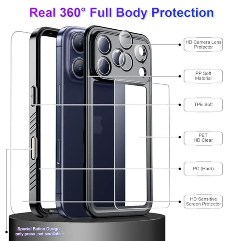 Experience the pinnacle of protection for your iPhone 17 Pro with the Temdan Compatible iPhone 17 Pro Case, meticulously crafted to deliver uncompromising defense against water, drops, and scratches. As a premier provider of high-end phone cases, Temdan presents a sophisticated solution that boasts a waterproof and built-in screen and camera protector, meeting the stringent IP68 standard for underwater protection up to 17 feet. This advanced case also features a military-grade dropproof and shockproof design, ensuring your device remains safeguarded against accidental drops and rough handling. With its sleek and durable construction, this premium case is perfect for those seeking top-tier protection for their iPhone 17 Pro.