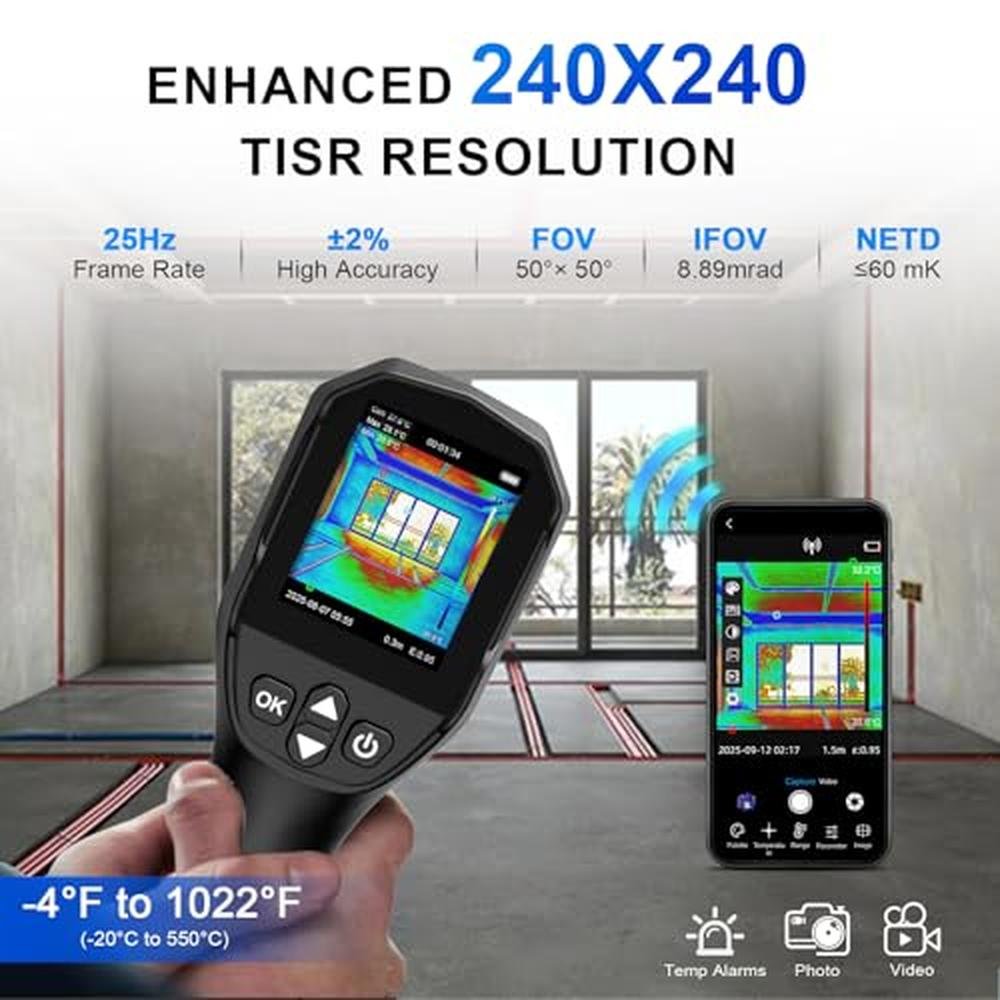 Experience the cutting-edge technology of thermal imaging with the AIOMEST Infrared Thermometer Imager, a premium thermal imaging camera gun designed to detect temperature heat with precision. Featuring a high-resolution 240x240 TISR sensor, this thermal imaging device can accurately measure temperatures ranging from -4°F to 1022°F, making it an essential tool for various applications, including HVAC, home inspection, electrical, and water/air leak checking. With its advanced thermal imaging capabilities, this camera gun provides a non-invasive and efficient way to identify heat patterns, detect energy losses, and pinpoint potential issues, allowing professionals to make informed decisions and take corrective actions. Whether you're a seasoned expert or a DIY enthusiast, the AIOMEST thermal imaging camera gun is the ultimate solution for unlocking invisible heat signatures.