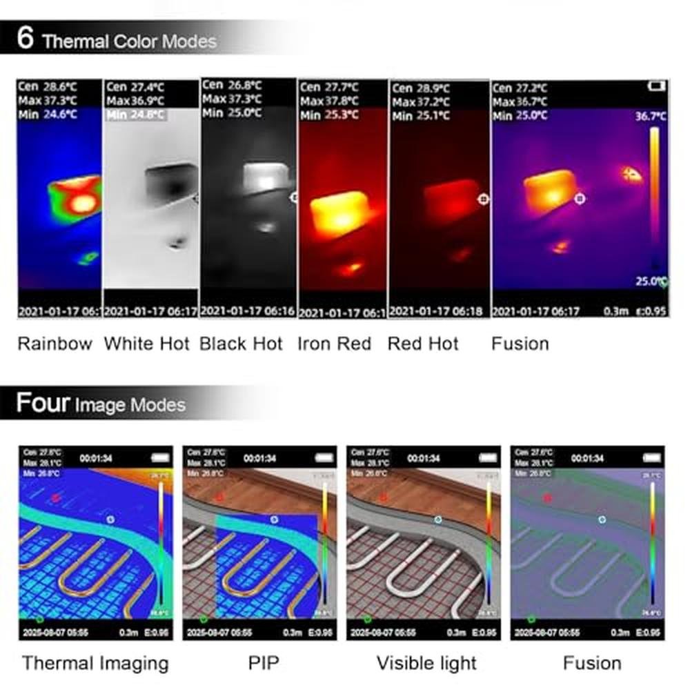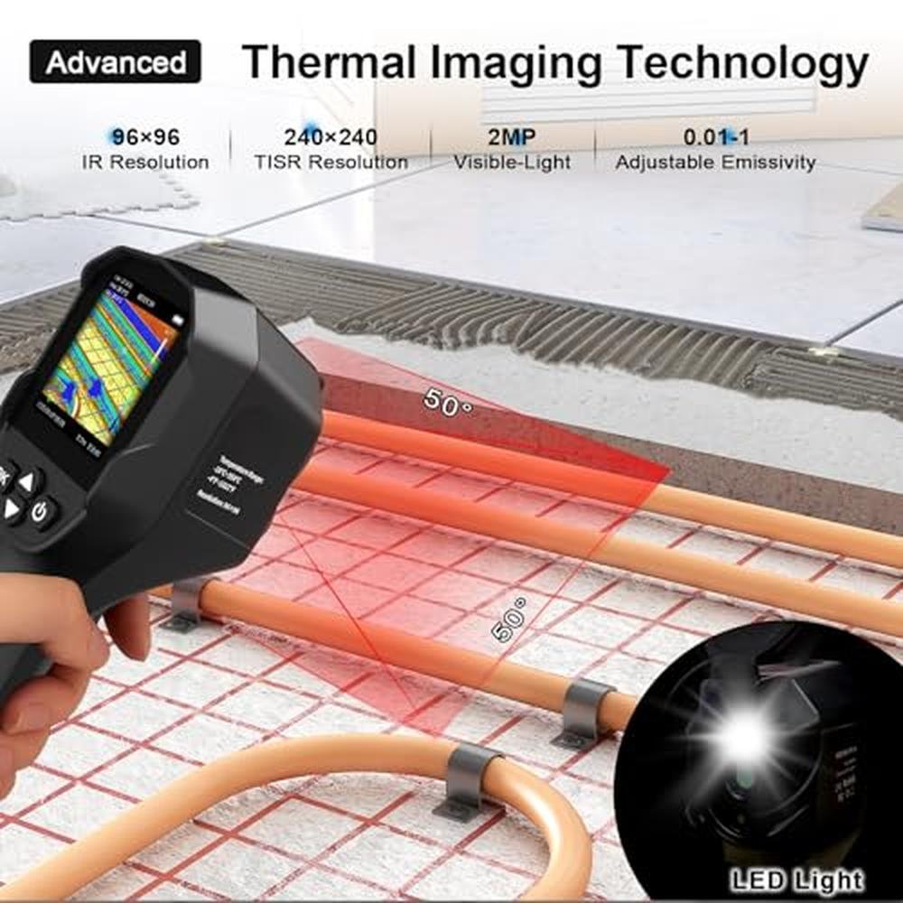 Unlock the full potential of thermal imaging with the AIOMEST Industrial Thermal Imager YXI96 Pro, a professional handheld thermal imager designed for electrical inspections, mechanical diagnostics, energy audits, and building maintenance. Engineered with a high-sensitivity 9696 IR detector, 240x240 TISR, and 25Hz refresh rate, it transforms invisible heat patterns into actionable insights, ideal for electricians, HVAC technicians, industrial engineers, and home inspectors. The YXI96 Pro boasts dual-sensor imaging for unmatched clarity, capturing precise temperature anomalies with its 9696 IR resolution and 2-megapixel visible light camera, which overlays sharp details onto thermal images using MSX Fusion Technology.