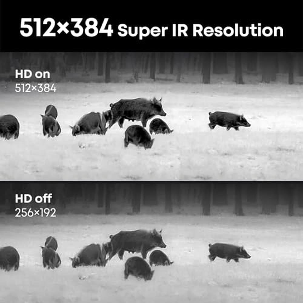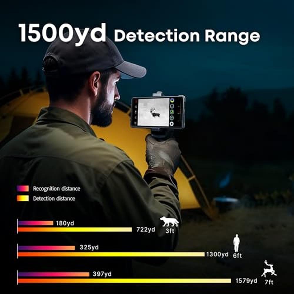 Experience the ultimate in thermal imaging technology with the Thermal Master T2 Pro Thermal Monocular, designed for hunting and outdoor detecting. This premium thermal scope allows you to spot deer and other wildlife from up to 1500 yards away, even in complete darkness. The Thermal Master T2 Pro features a 13mm lens, tactical handle, and scope mount for easy installation and use with your iPhone. Whether you're a seasoned hunter or outdoor enthusiast, this thermal scope is the perfect choice for anyone looking for a reliable and high-quality thermal imaging solution. Its advanced infrared camera technology provides crystal-clear images, capturing subtle heat differences in both day and night. With its impressive detection range, you can spot targets such as whitetail deer at 787 yards, wild hogs at 669 yards, and coyotes at 394 yards. Additionally, the T2 Pro is suitable for wilderness parent-child interaction and education, as well as watching birds in the forest at 160 yards.