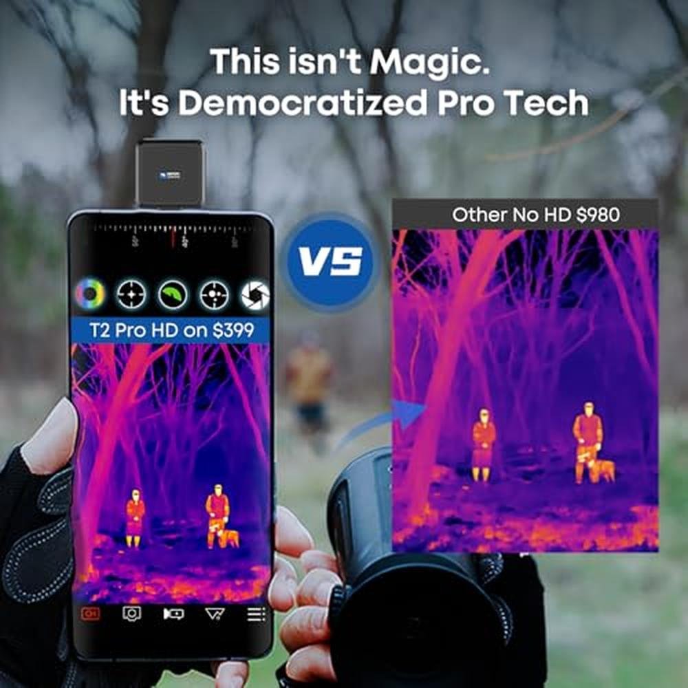 Thermal Master T2 Pro Thermal Monocular for iPhone, 1500 Yards Hunting Night Vision Scope with 13mm Lens, Tactical Handle, Scope Mount, Infrared Camera for Outdoor Detecting Deer