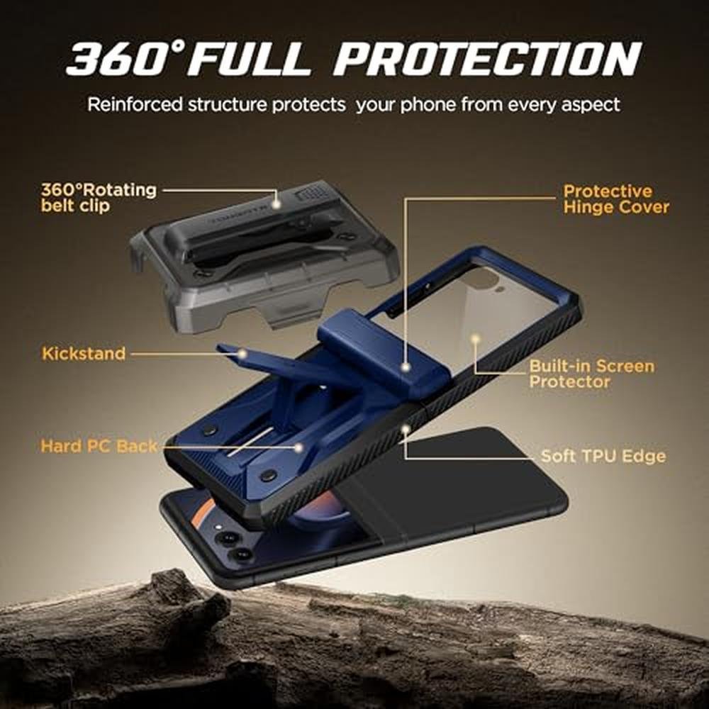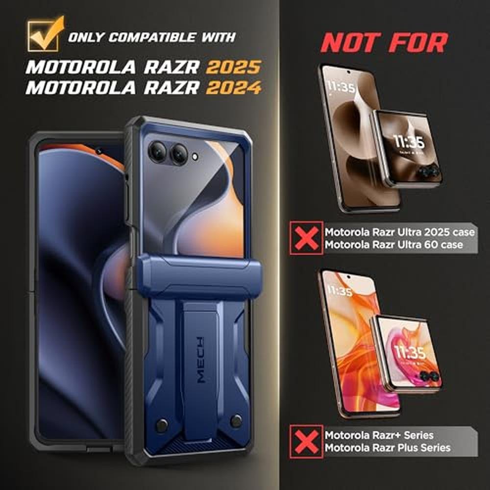 TONGATE for Motorola Razr 2025/Razr 2024 Case with Screen Protector, [Stand & Belt-Clip] [Hinge Protection Cover] [Anti-Slip], Full-Body Military Grade Protective Phone Case, Blue