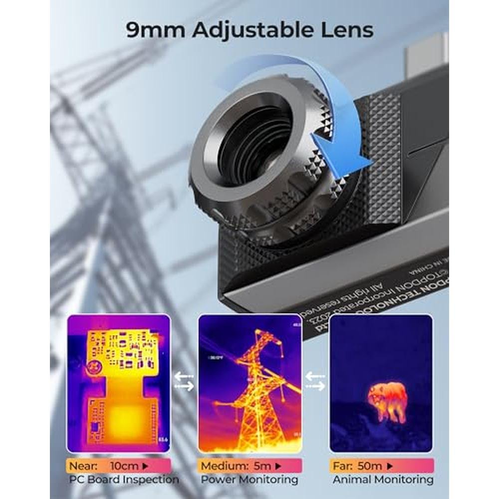 Indulge in the exceptional capabilities of the TS001, a long-focus Android thermal imager meticulously designed to capture sharp images with precision, even for objects as close as PCB boards. The high-resolution 256x192 pixels infrared sensor, combined with a smooth 25Hz frame rate, ensures that every detail is captured with utmost clarity. The adjustable 9mm lens covers distances from 0.1 to 500 meters, catering to diverse applications including building inspections, animal observation, auto repair, and PCB inspection. Equipped with measurement and observation modes, the TS001 provides accurate temperature readings and intuitive insights into heat distribution, empowering professionals such as home inspectors, automotive technicians, and electricians to detect, diagnose, and resolve issues with unparalleled efficiency.