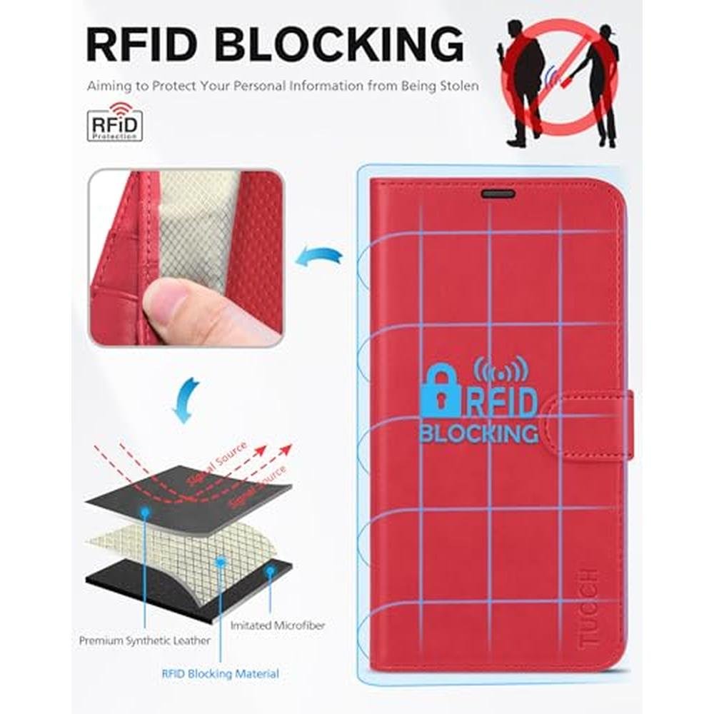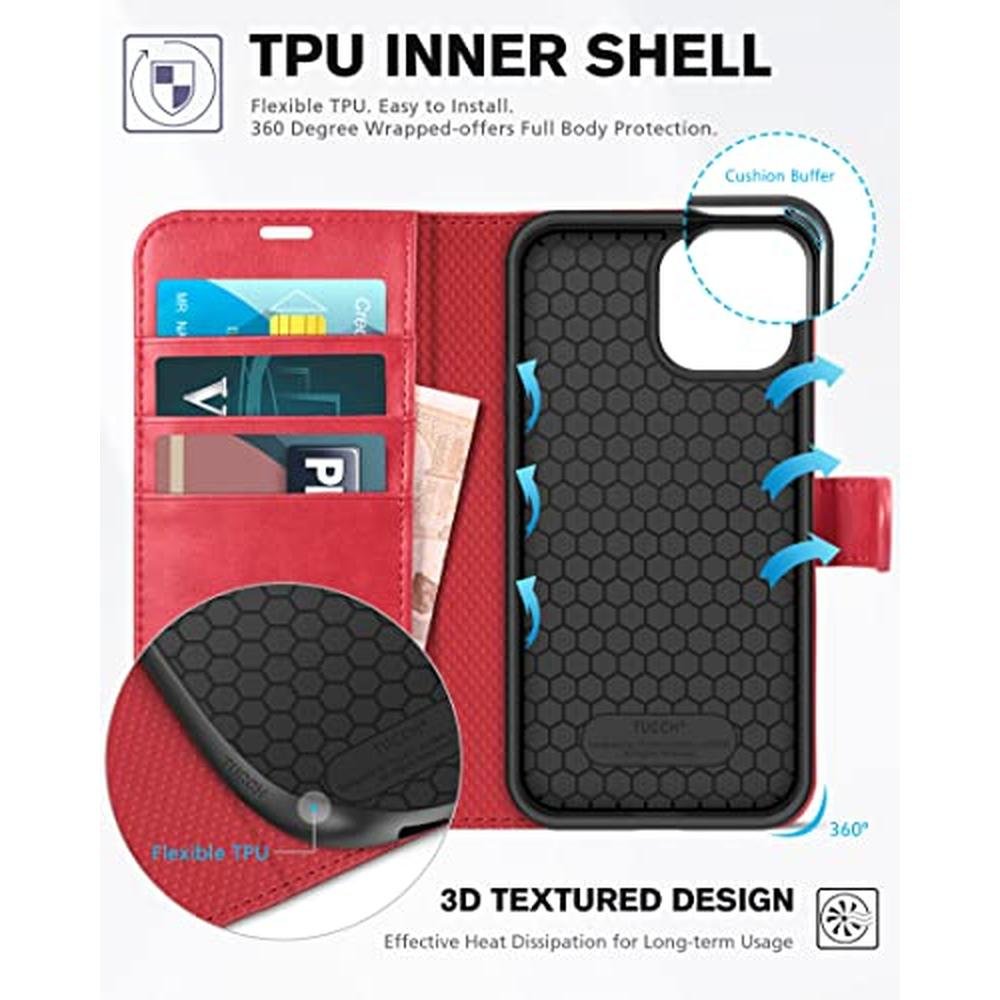 TUCCH Wallet Case for iPhone 13 6.1-inch 5G, [RFID Blocking] Card Slots Holder Stand [Shockproof TPU Interior Case] PU Leather Magnetic Protective Flip Cover Compatible with iPhone 13 6.1" 2021, Red