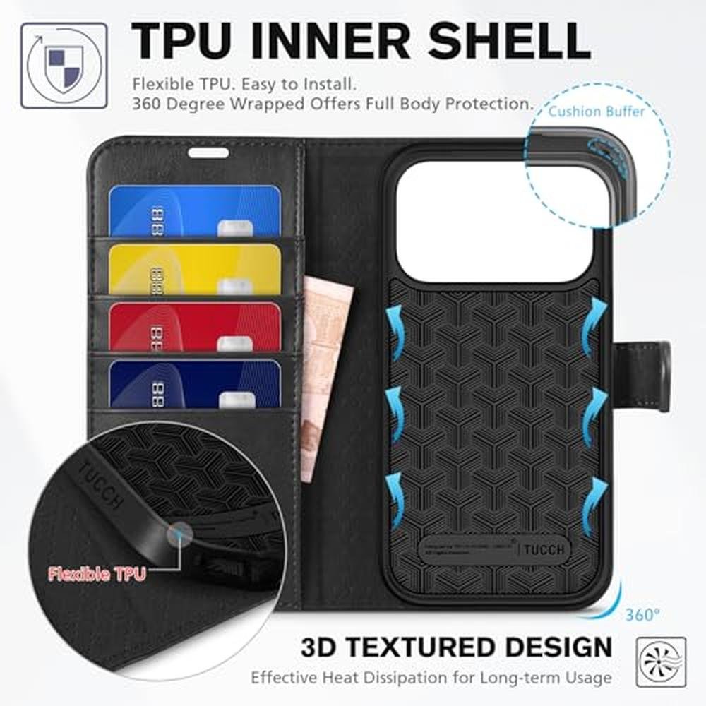 TUCCH Wallet Case for iPhone 17 Pro 6.3 2025 | RFID Blocking 4 Card Holders Kickstand Shockproof | Premium Protection