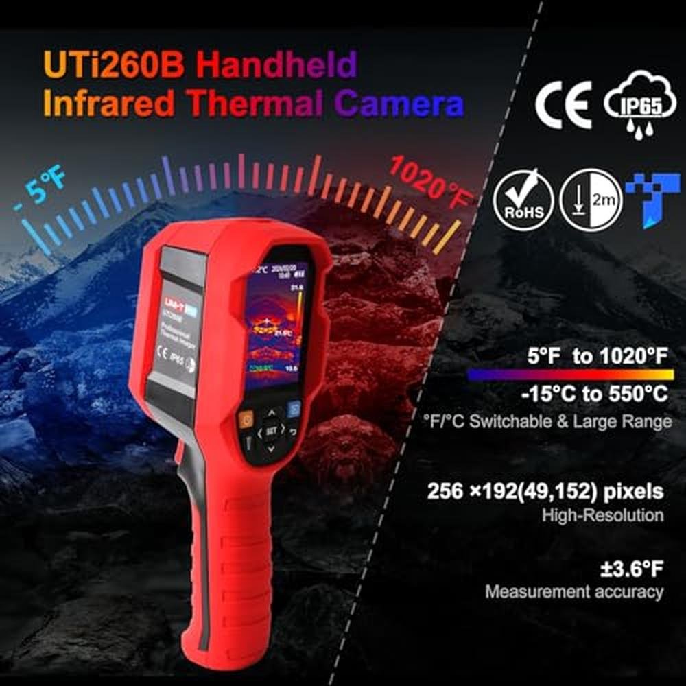 Experience the cutting-edge technology of the UNI-T UTi260B Thermal Camera Imager, a premium-grade handheld infrared camera designed for precise thermal imaging. With an impressive 49152 pixels and 256x192 IR resolution, this thermal camera is ideal for various high-end applications, including home inspection, hunting, and industrial use. The IP65 rating ensures durability and resistance to harsh environments, while the 2-meter drop resistance provides added protection. This rechargeable thermal camera is a cost-effective solution for those seeking a reliable thermal camera for sale under $5000. Whether you're a professional or an enthusiast, the UNI-T UTi260B Thermal Camera Imager is an excellent choice for unlocking the secrets of thermal imaging.