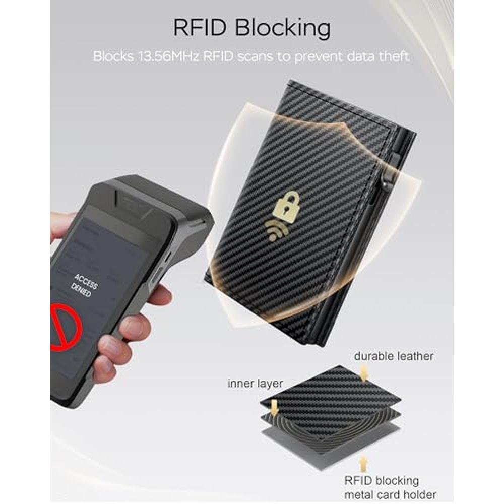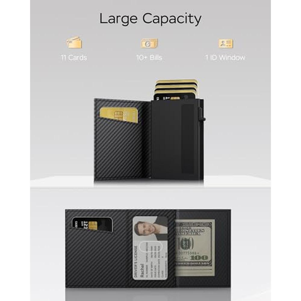 Vast Scenery Wallet for Men - Sleek & Functional - Secure RFID Blocking Wallet with Smart Metal Pop Up Credit Card Holder, Minimalist Slim Front Pocket 11+ Cards ID Window Cash Slot, Gift for Him
