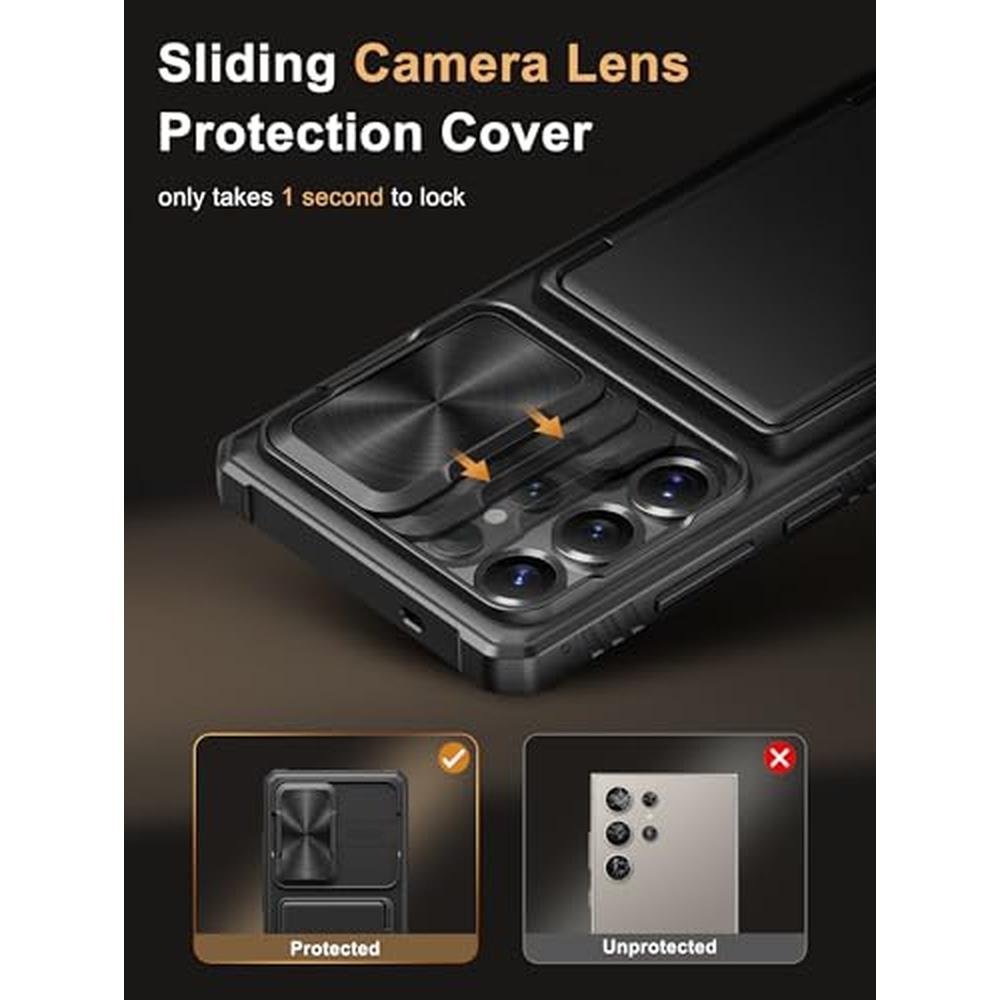 Experience the ultimate in protection and convenience with the Vihibii case, expertly designed for the Samsung Galaxy S25 Ultra. This premium case safeguards your device against drops and scratches, while providing a built-in card holder for up to 4 cards, featuring RFID blocking technology to secure your personal data. The heavy-duty wallet cover also includes a slide camera cover for added privacy, engineered with military-grade drop protection to ensure your device remains safe from accidental falls. Whether you're looking for a reliable case for your daily commute or an adventure, the Vihibii case is the perfect choice, offering a sleek black design that complements your device. With its unique combination of protection, functionality, and style, this case is designed to provide 360-degree protection for your phone, including screen raised edges protection and precise cutouts. The Vihibii case is made from high-quality materials, including silicone and polycarbonate, and is compatible with the Samsung Galaxy S25 Ultra 5G 6.9" (Released in 2025). The case is packed in a carton packaging and comes with a special feature of card holder, slide camera lens protection, and RFID blocking protection.
