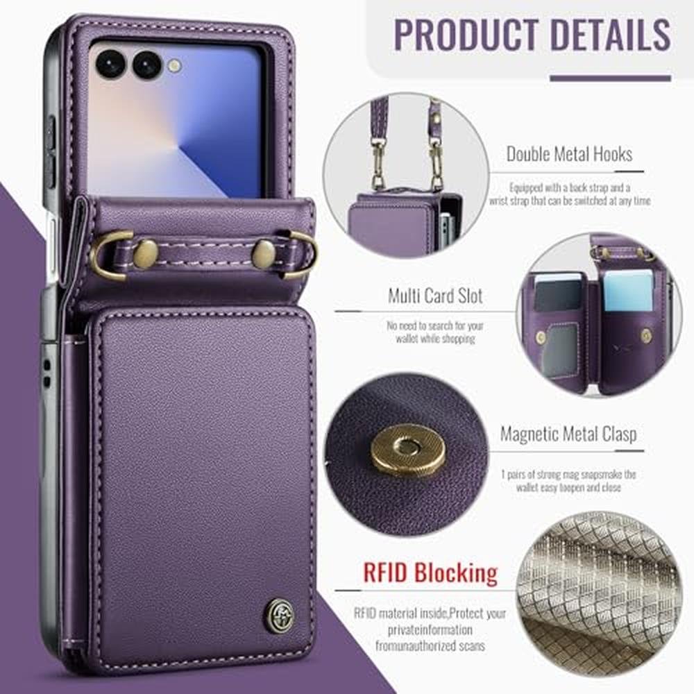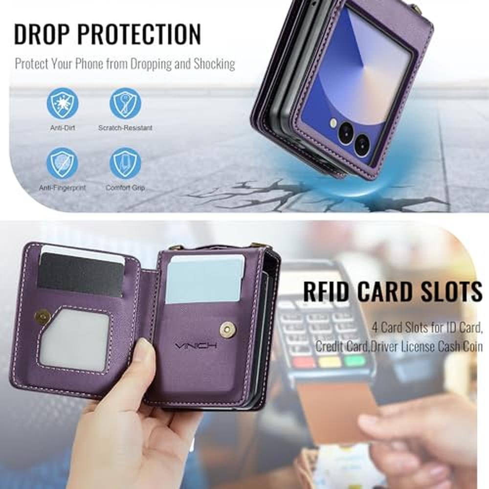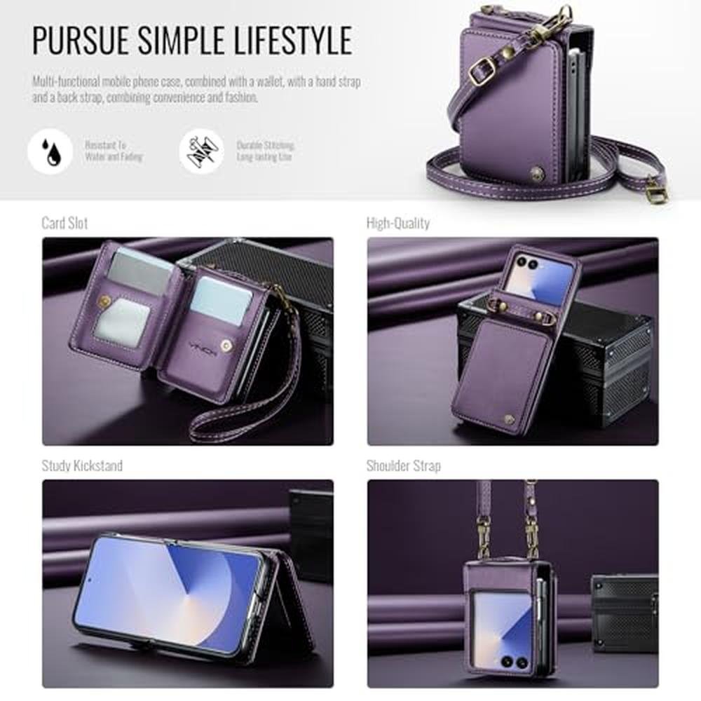 - The sleek purple design of the Vinich Crossbody Wallet Case adds a touch of sophistication and elegance to your Samsung Galaxy Z Flip 7