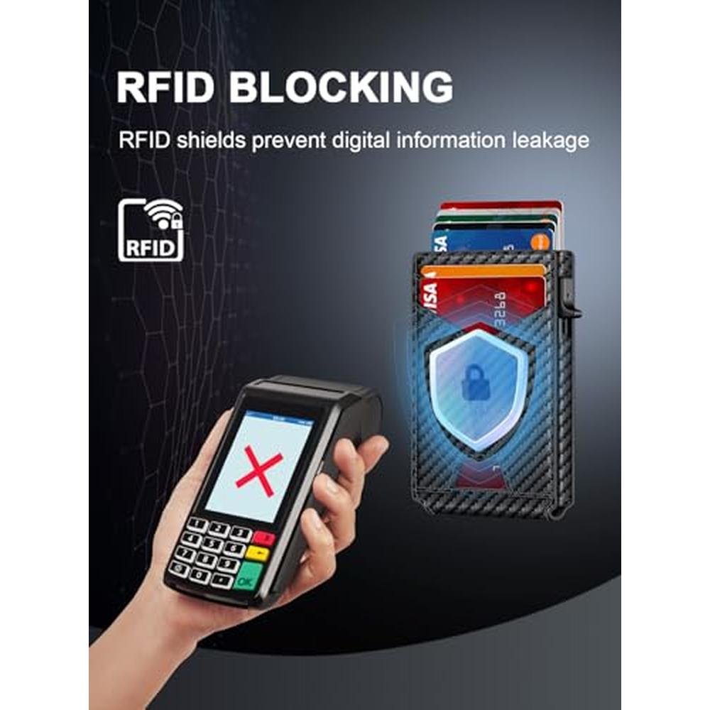 • RFID BLOCKING SECURITY - Stop digital theft! This rfid wallet for men with advanced RFID-blocking technology encrypts card data and blocks 99.9% of wireless scans. Ideal for commuters and travelersthe durable aluminum frame adds physical anti-theft protection. Securely stores IDs and credit cards with zero signal leakage. No more worrying about data theft with this wallets for men.
