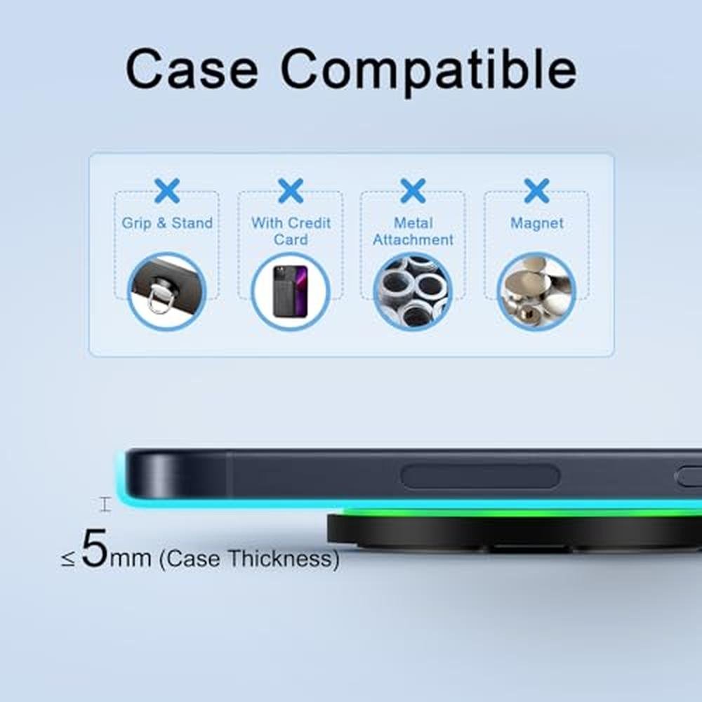 Unlock rapid charging with our 15W Wireless Charger, designed for maximum convenience for mobile users. Charge up to 3 times faster than 5w chargers. Simply place your phone on the Fast Wireless Charger Pad to begin charging, eliminating the need to constantly plug and unplug. Our wireless charger is compatible with a wide range of devices, including Google Pixel 9, Samsung Galaxy S25, and Moto G Power 2025.