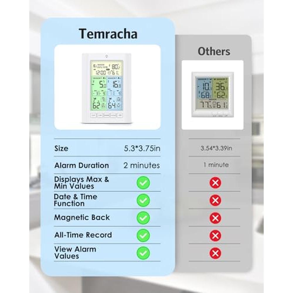 Thermometer Freezer | Temracha Upgraded Digital Fridge Thermometer with Alarm | Advanced Temperature Control
