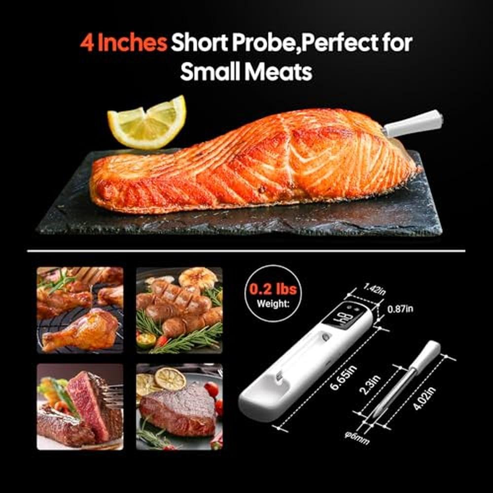 Indulge in the world of precise cooking with our premium Wireless Meat Thermometer Digital, boasting a crystal-clear white LED display and unparalleled 1000ft Bluetooth 5.4 connectivity. As a top-tier meat thermometer, our device guarantees perfect doneness every time, whether you're BBQing, grilling, or utilizing a rotisserie. The meticulously designed 4-inch short smart food thermometer probe is crafted for effortless use and unwavering accuracy, providing you with the ultimate meat thermometer experience. With its advanced wireless capability, you can effortlessly monitor meat temperatures from a distance, making it the perfect thermometer meat solution for discerning home cooks and professional chefs alike.