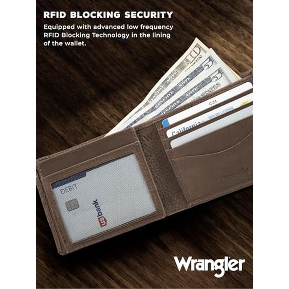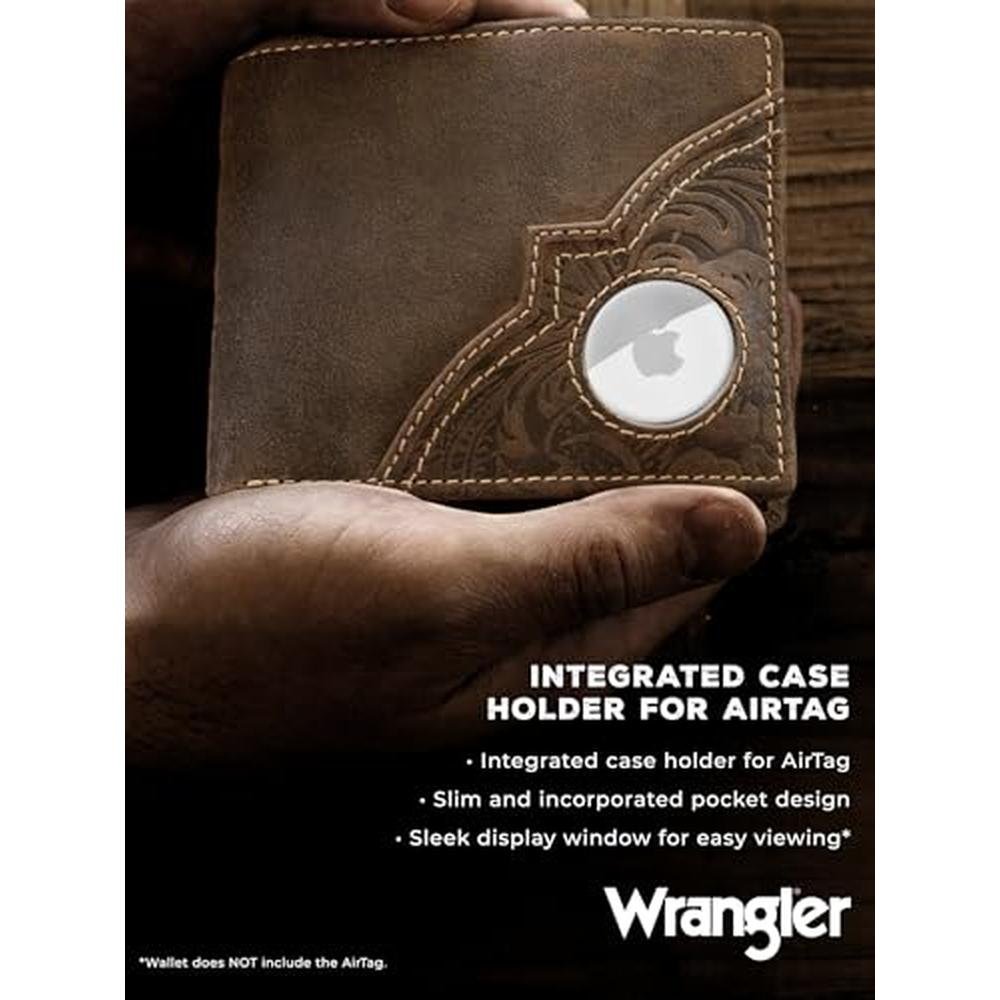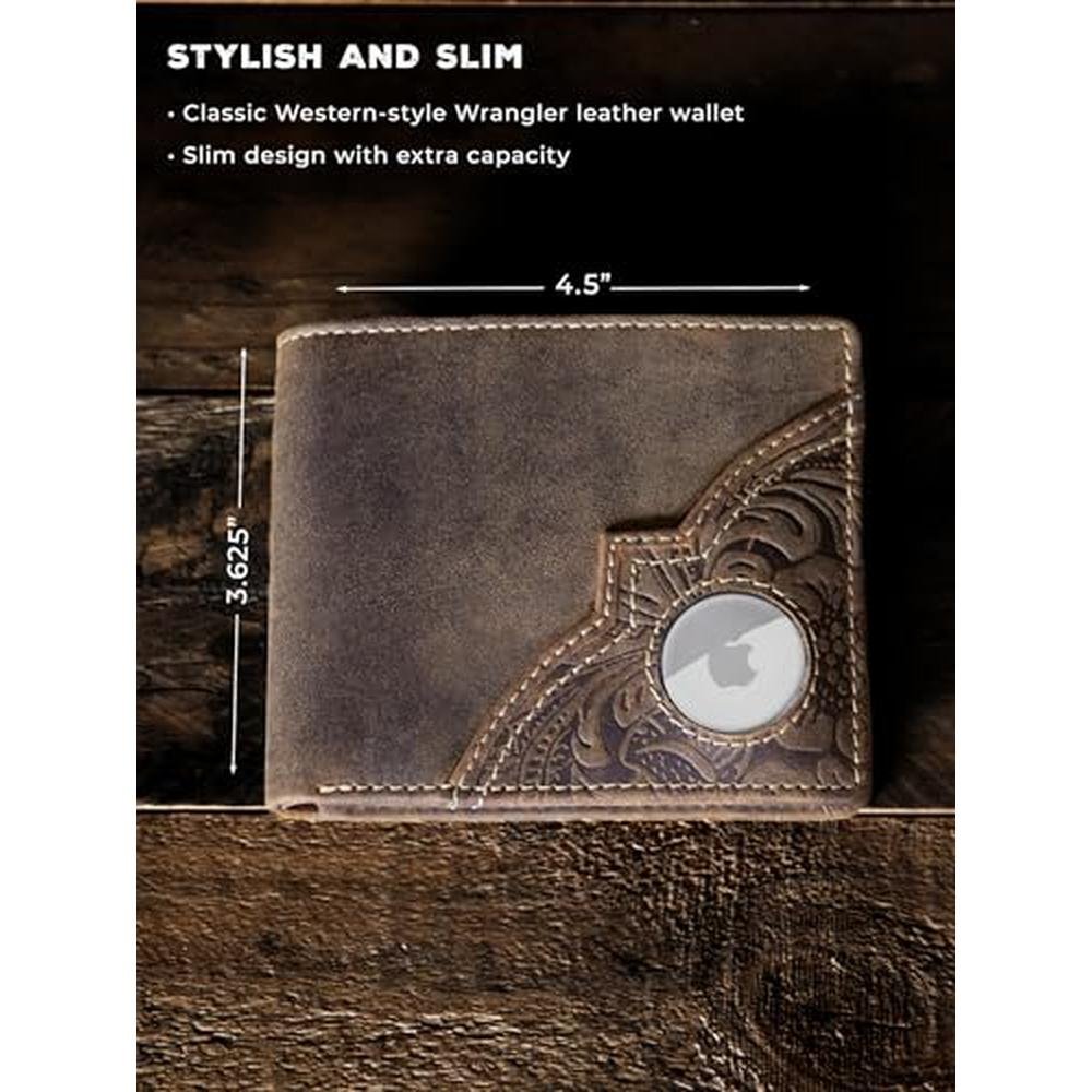Wrangler Men's Wallet with AirTag Holder, Bifold Slim RFID Blocking Wallet, Genuine Leather, 11-22 Card Bifold