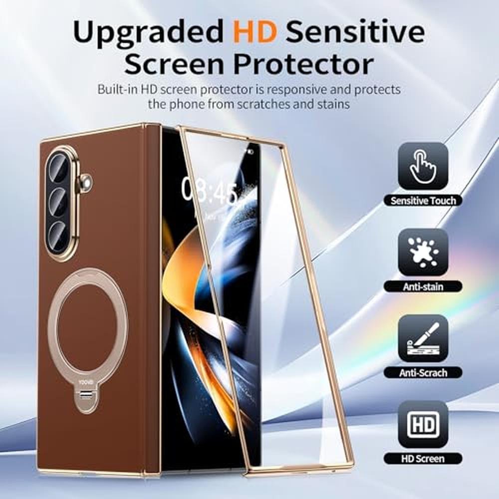 Experience the ultimate in luxury and protection with the YOOVEI case for Galaxy Z Fold 7, expertly crafted from high-quality leather to provide a sleek and sophisticated look. Designed with functionality in mind, this case features a built-in screen protector and hinge protection to safeguard your device from scratches and damage. Compatible with Magsafe, magnetic kickstand, and ring holder, this case offers unparalleled convenience and versatility. As a top choice among users searching for a "case yoovei", our product stands out for its exceptional quality and design, making it an ideal solution for those seeking a reliable and stylish case for their Samsung Zfold 7. With its brown leather finish, this case adds a touch of elegance to your device,