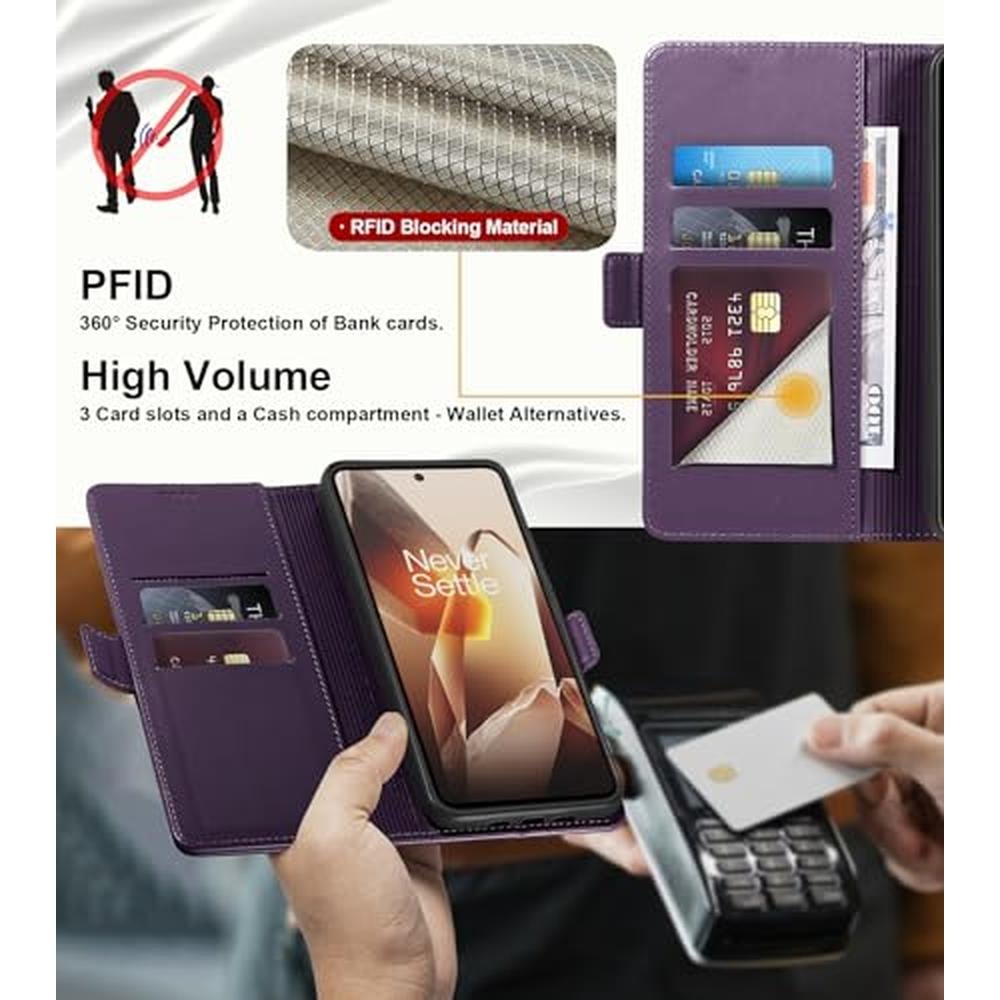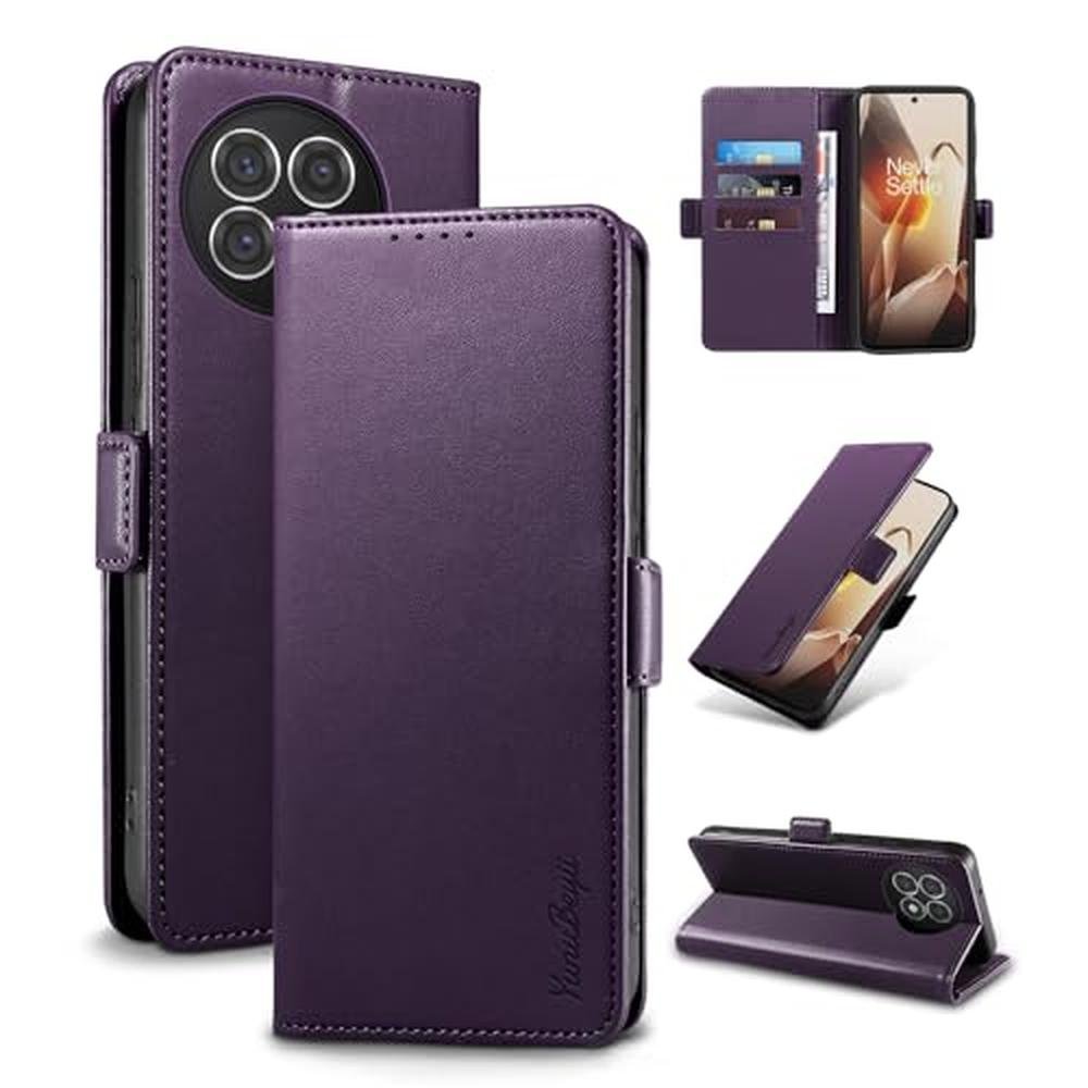 Yunubeyii Wallet Flip Case for OnePlus 13R 5G - [RFID Blocking] Luxury PU Leather Card Holder Magnetic Phone Cover with Kickstand,Shockproof Protective Case,Purple
