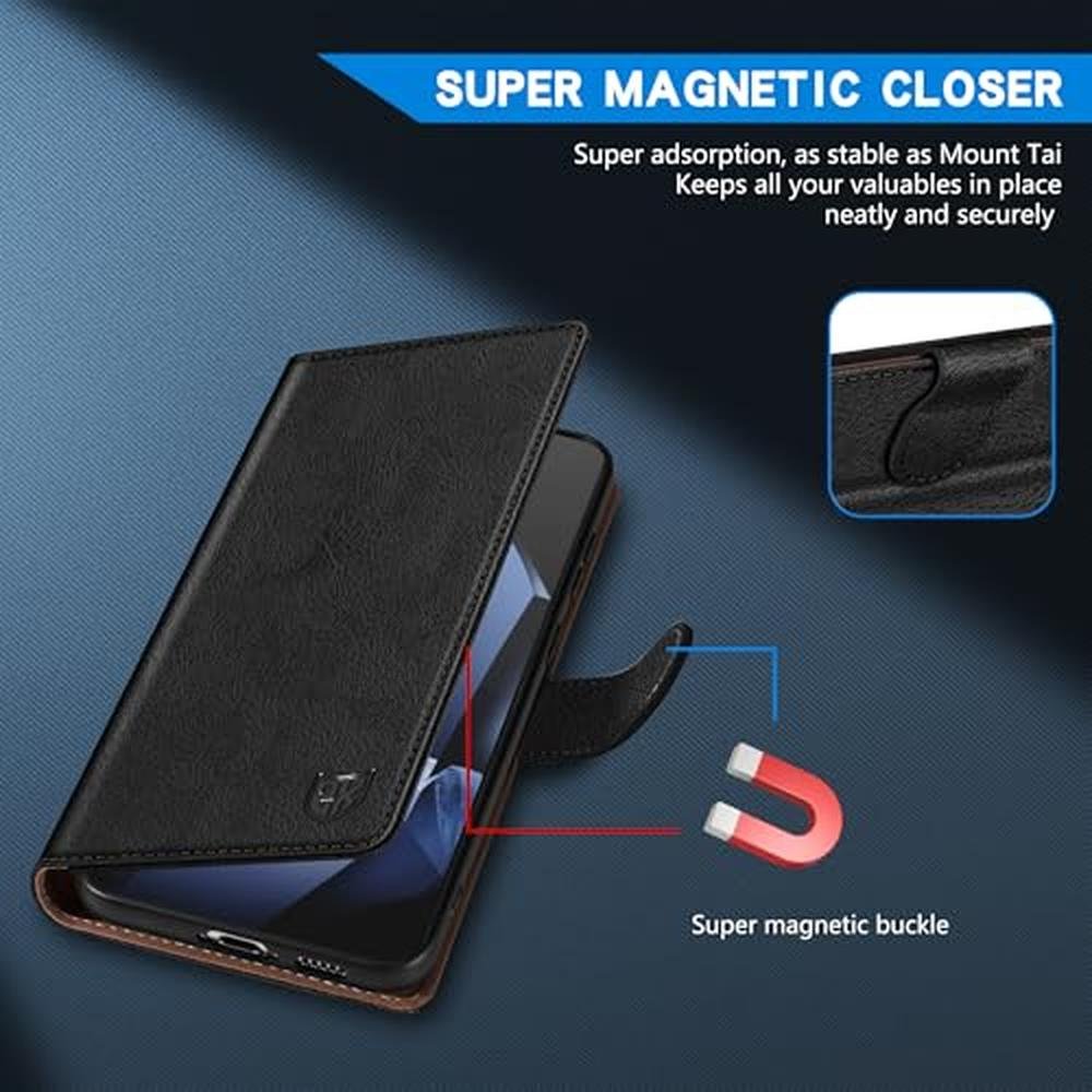 ZZXX for OnePlus 13 Wallet Case with [RFID Blocking] Card Slot Kickstand Magnetic Closure Leather Flip Fold Protective Phone Case for OnePlus 13 Case Wallet(Black-6.82 inch)