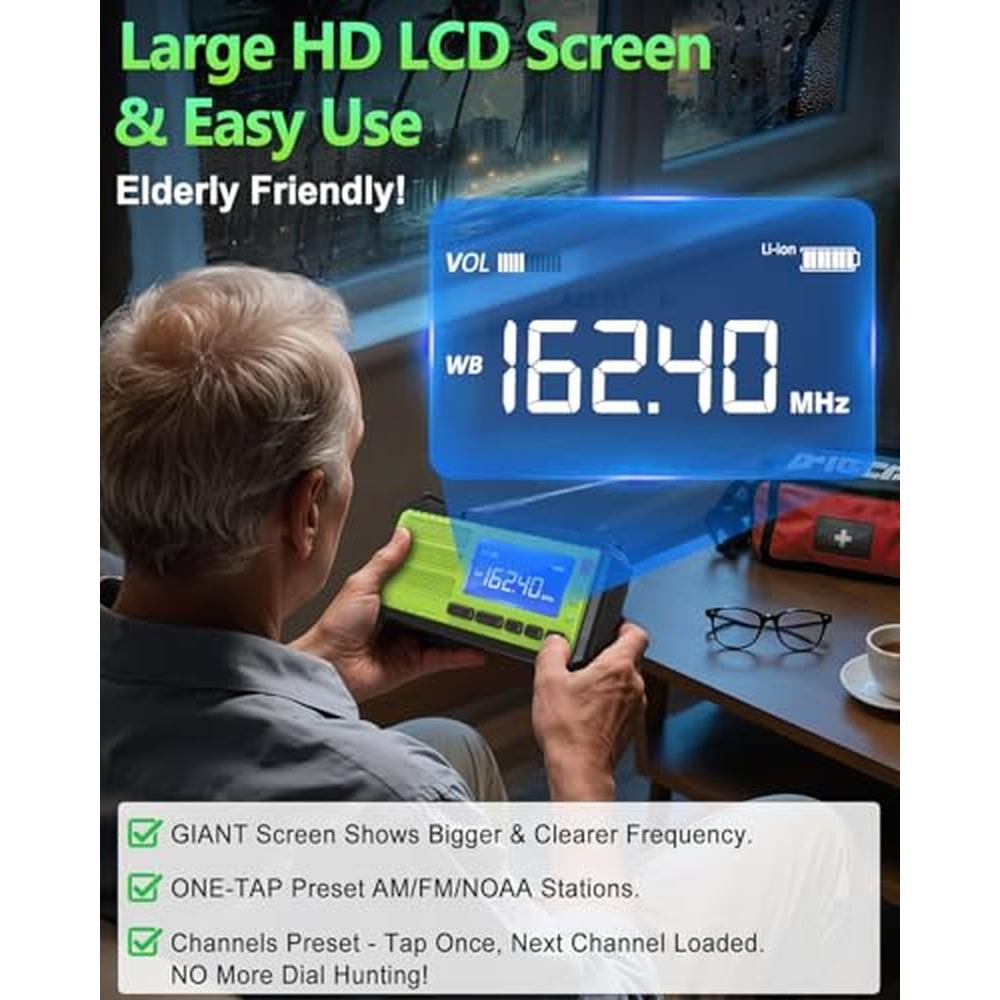 - [Stay Informed with HD LCD Display]: The multifunctional weather radio features a clear HD LCD display that shows battery level and tuning frequency, coupled with a digital tuner for precise AM/FM/WB reception. Stay alert with the built-in weather alert function, ensuring youre always prepared for any situation.