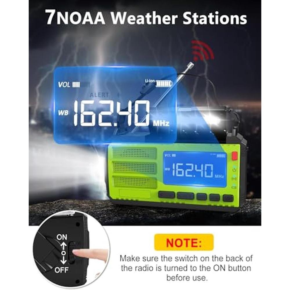- [Reliable Power with 4 Charging Methods]: No power? No problem. This NOAA weather radio offers 4 reliable charging methods: Type-C USB, solar, hand-crank, and built-in rechargeable battery. Whether you're at home or outdoors, the 37000mWh rechargeable battery ensures you stay connected and powered up at all times.DONNOT SUPPORT AAA BATTERIES)