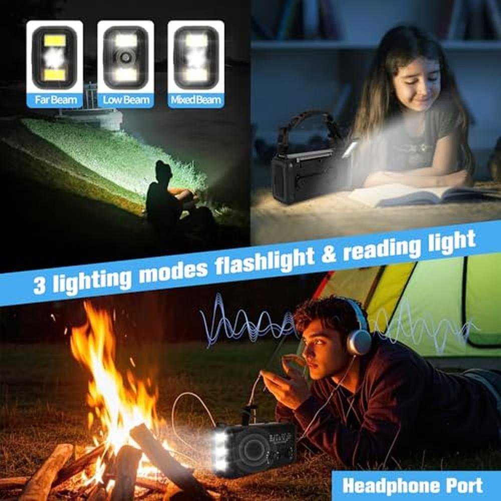 - 3 light sources and SOS alarm: The emergency weather radio is equipped with LED lights, which can be used as an emergency light source. It has three lighting modes (high beam, low beam, high beam, and low beam) and 8 LED reading lights to meet your different lighting brightness needs. These lights can be used to provide illumination at night, making it convenient for users to search for items and perform simple activities in emergency situations such as power outages. The SOS function can emit loud alarm sounds and flashing lights, allowing you to quickly draw attention to others in emergency situations.