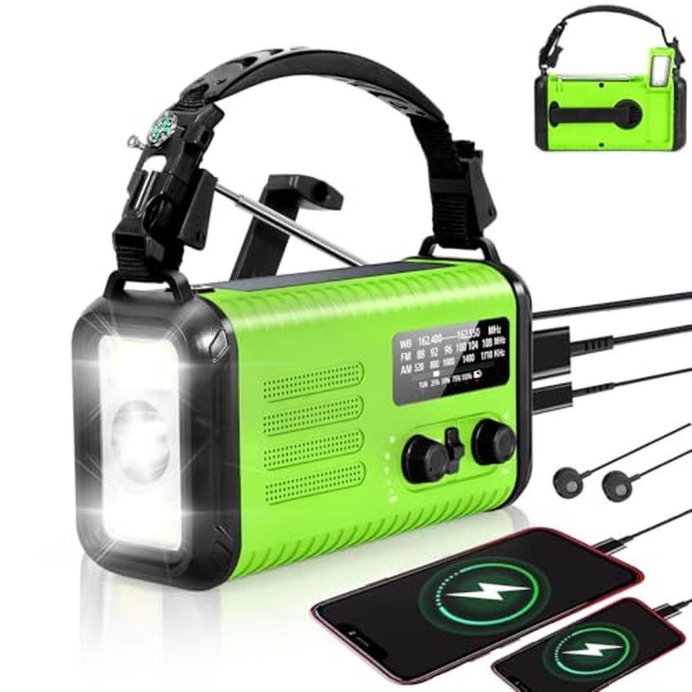 20000mAh/74000mWh Emergency Crank Radio, NOAA/AM/FM Solar Hand Crank Weather Radio, Battery Powered Radio with SOS Alarm & Flashlight for Camping/Emergencies (Light Green)