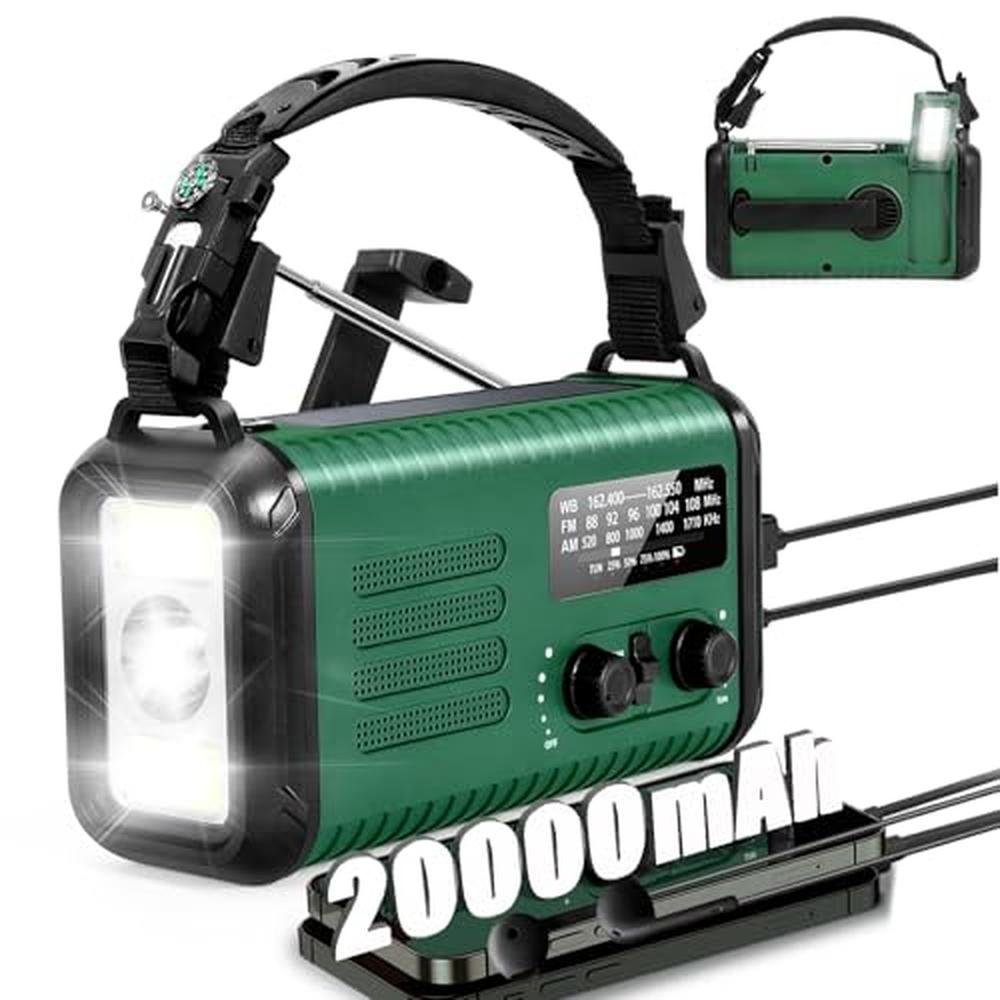 20000mAh / 74000mWh Emergency Radio, Solar Hand Crank Radio AM/FM/NOAA Weather Radio, Battery Powered with Cell Phone Charger, SOS Alarm, Flashlight & Reading Lamp for Emergencies Hurricane Camping