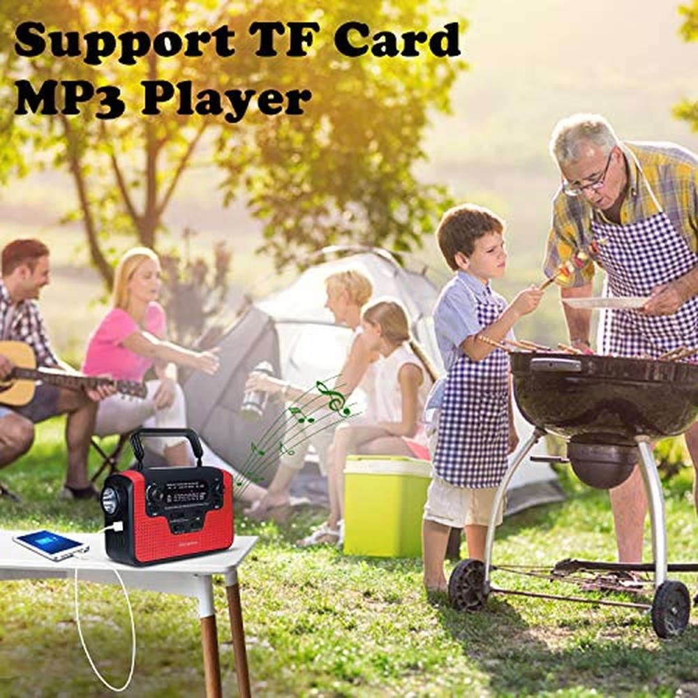 - SOS alarm: The 388 solar radio bulid-in a loud SOS alarm with flashing mode. In an emergency, a loud siren is more efficient than shouting, and saves our energy, giving the cargo a better chance of survival. Perfect for camping, hiking, or during power outages.