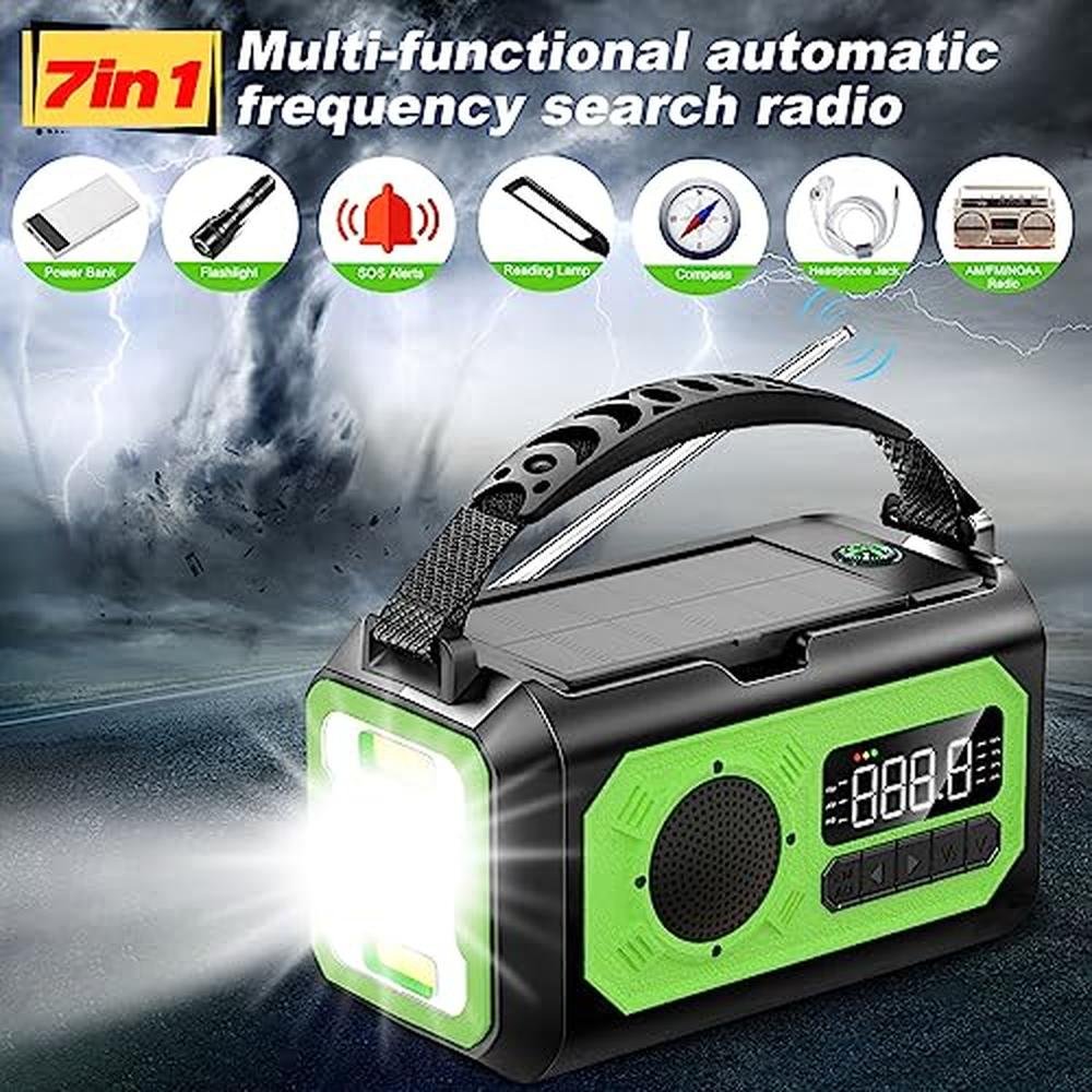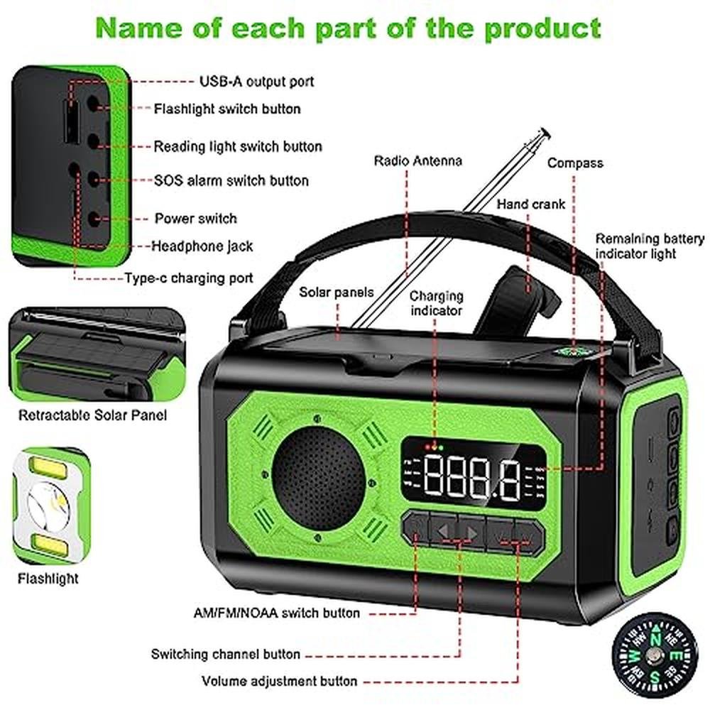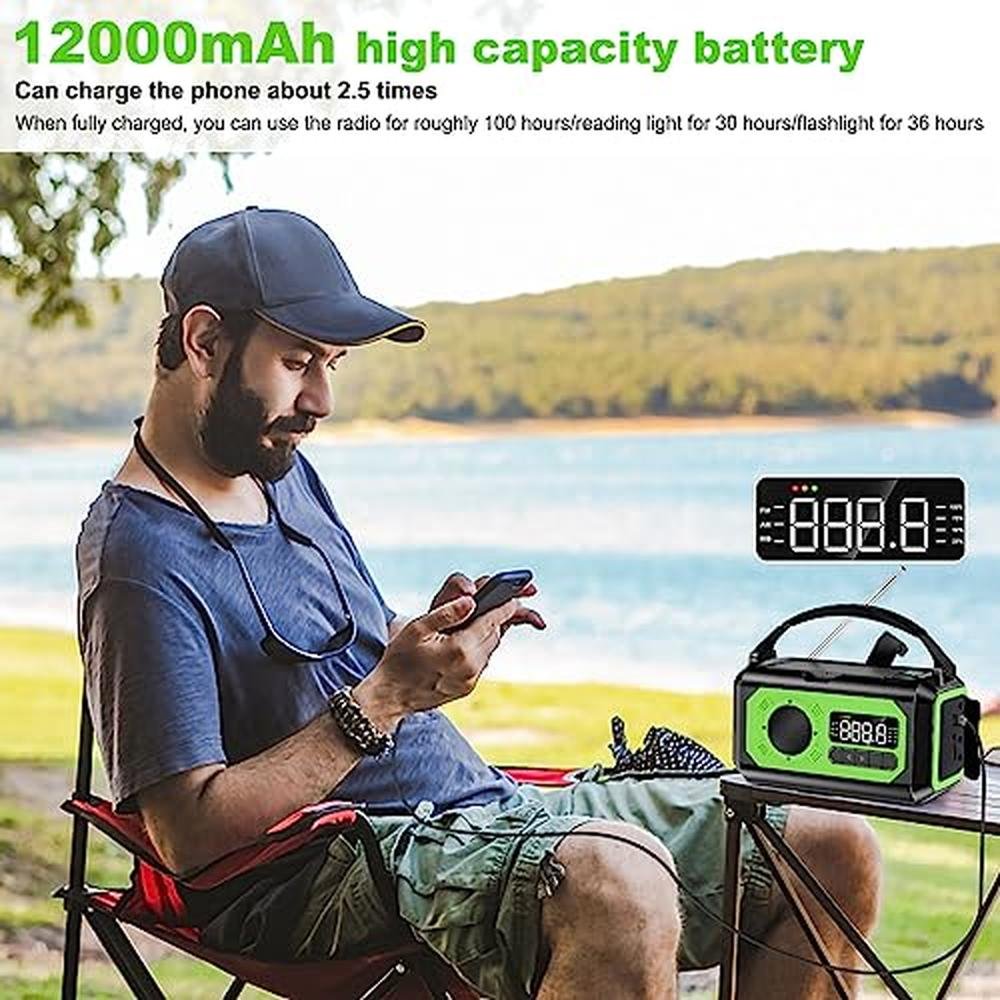 44400mWh/12000mAh Emergency Radio, Hand Crank Portable Solar Radio AM/FM/NOAA Weather Radio with 2 Solar Panels,3 Charging Methods,SOS Alarm,Flashlight,Phone Charger,Compass,Reading Lamp(Grass Green)