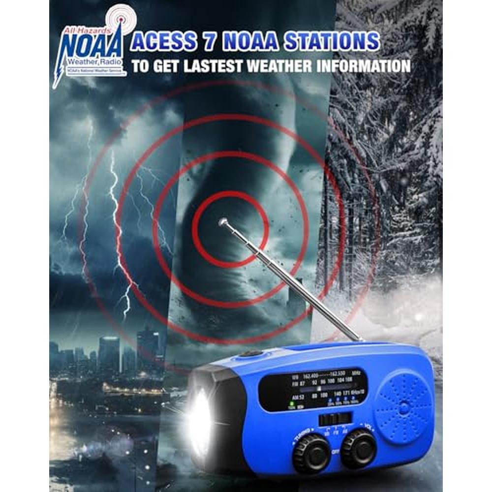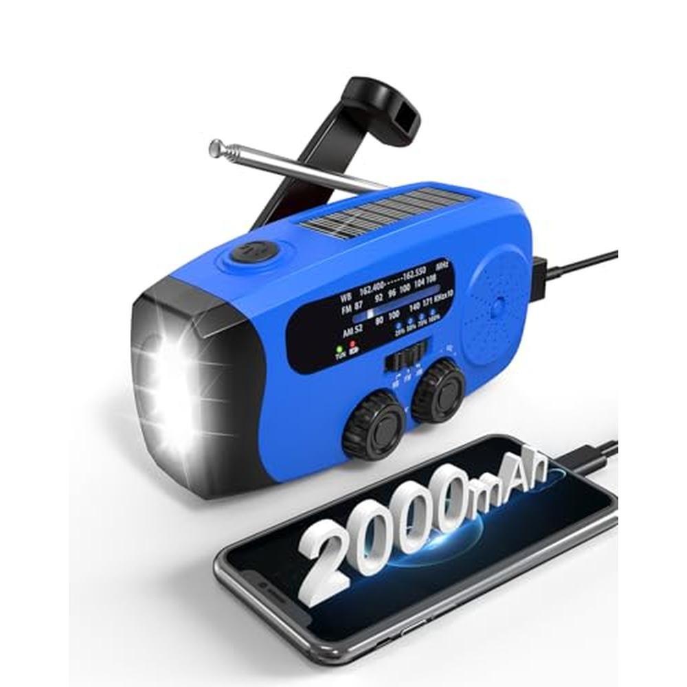 Emergency Hand Crank Radio with 2000mAh CellPhone Charger, AM/FM NOAA Radio with Solar,Crank & USB Charger Portable Weather Radio with Bright Flashlight for Home and Outdoor Emergencies. PROTABLE EMERGENCY RADIO This hand crank emergency radio measures 5*1.8*2.4 inches and weighs 0.5 LB, making it very lightweight and easy to carry. Whether at home or outdoors, lighter and smaller device in an emergency kit is a better choice. 2000mAh PHONE CHARGER This hand crank emergency radio can be used as a 2000mAh cell phone charger to power your phone in an emergency to make important calls to family, emergency services or contact assistance. AM/FM WEATHER RADIO This hand crank emergency radio receives AM/FM bands, choose your favorite channel and enjoy your leisure time, and also receives NOAA weather broadcasts that report emergency weather alerts for your area and alert you to prepare in advance. LED BRIGHT FLASHLIGHT This hand crank emergency radio comes with a bright 1W LED flashlight. You don't have to worry about a sudden power outage without a light source, it will cut through the darkness and maximize your visibility, which can improve your safety and security. 3-WAY POWER SOURCES This hand crank emergency radio can be charged via hand crank, solar panel and micro USB. There are multiple power backup options, making it easier to keep the emergency radio running for long periods of time and never lose power. SELLER WARRANTY: - 45-Day Money Back Guarantee; - 18-Month Replacement Warranty; - Lifetime Support Guarantee. PACKAGE INCLUDED: -1x MD-086 Hand Crank Radio -1x Type-C Charging Cable -1x User Manual