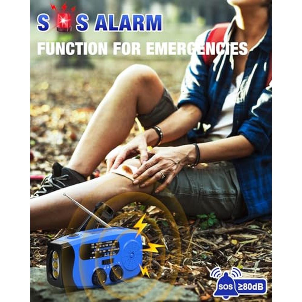 - SOS Alarm Function for Emergencies This emergency hand crank radio has been upgraded to include a SOS distress function. When stranded in a snowstorm or hurricane, you can press and hold for 3 seconds to sound a siren louder than 80 decibels to attract the attention or help of rescuers