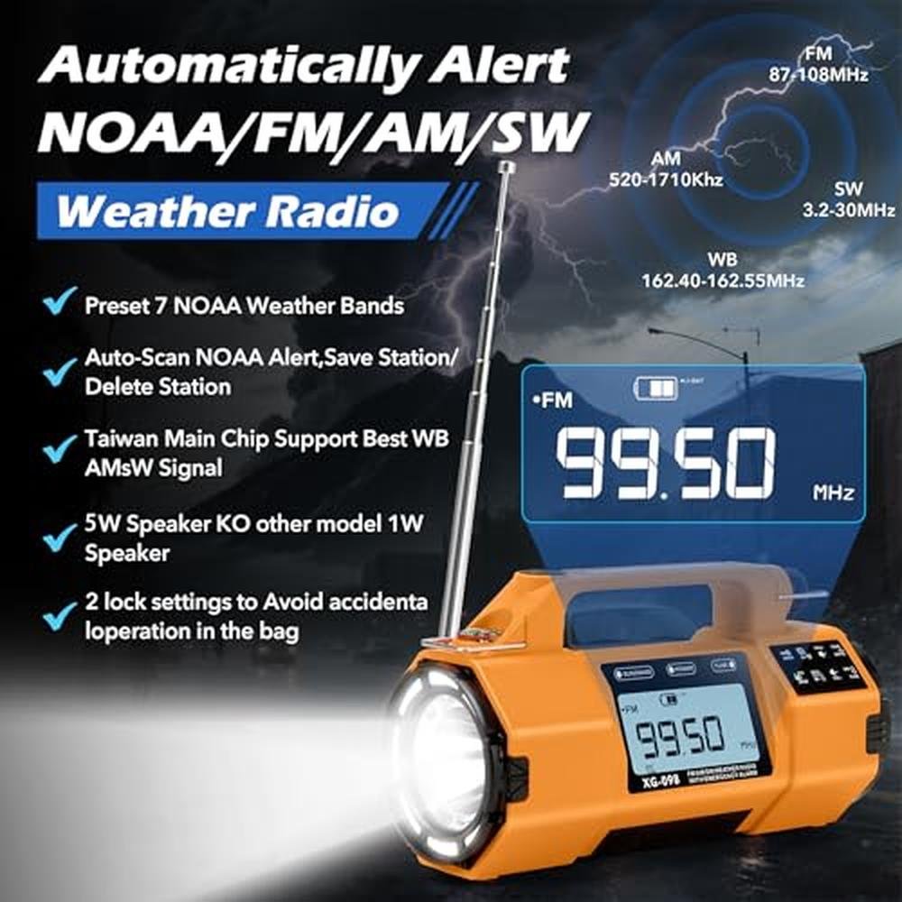• Auto-Scans NOAA Weather Alerts for Critical Updates-Never miss a life-saving alert! This emergency weather radio instantly locks onto NOAA weather alerts with its automatic scan of all 7 NOAA weather radio channels. Get hurricane, blizzard, fire or earthquake warnings even during blackouts. Stay informed with AM(MW)/FM/SW/NOAA Alert broadcasts. Essential power outage essentials for every home