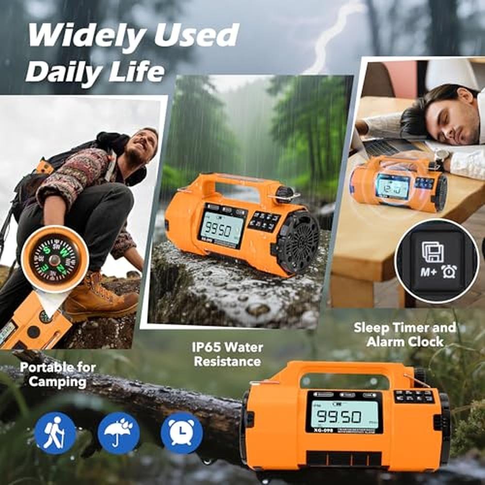 • Solar Power/Hand Crank/USB Type-C Charging for Any Crisis-Unlimited power when the grid fails! This solar powered radio with hand crank keeps running by solar power, hand crank emergency radio dynamo, or USB-A/Type-C charging. The 5000mAh battery backup charges phones and powers emergency radio functions. Includes super-bright 3-mode crank flashlight to cut through darkness. Your reliable survival gear and supplies
