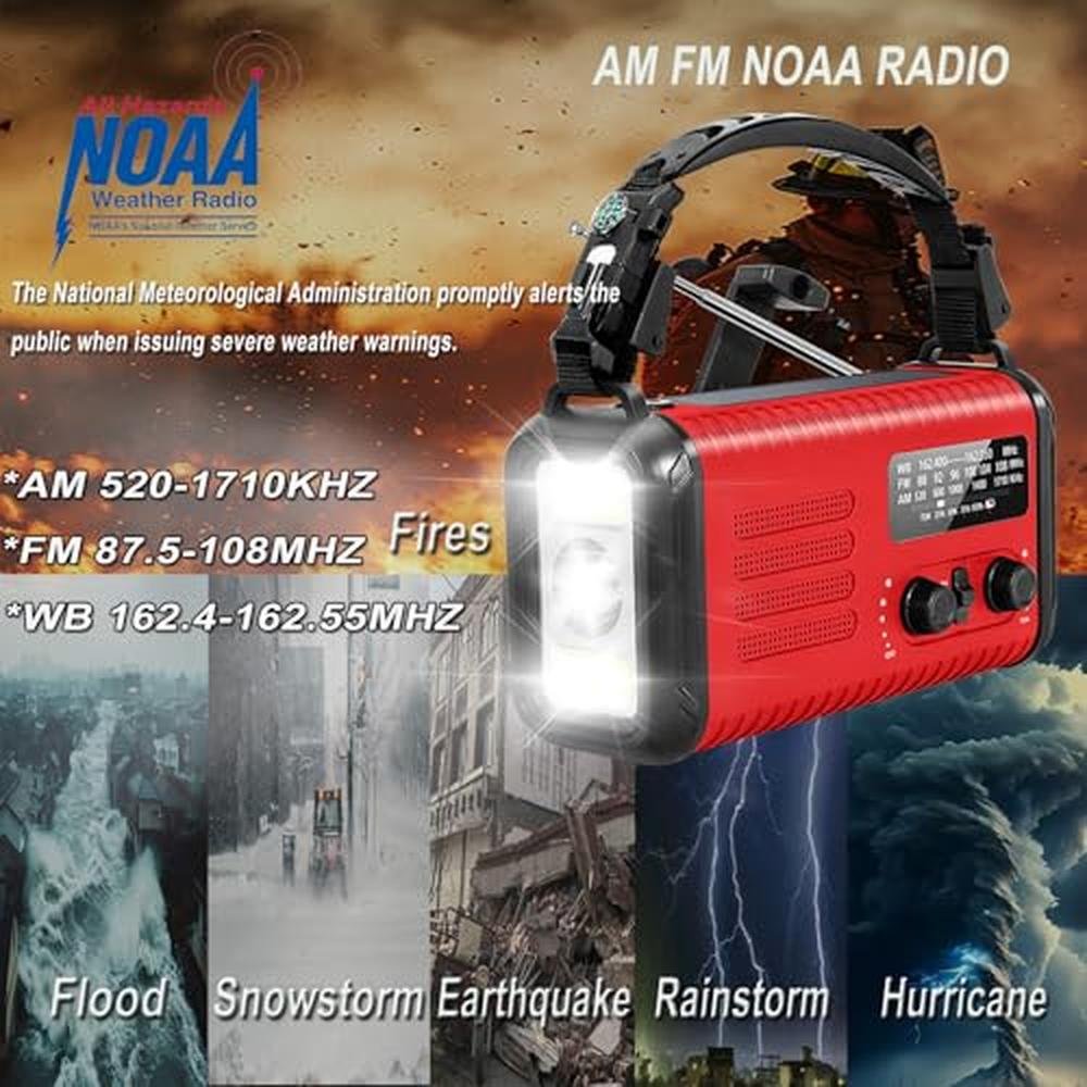 - High sensitivity reception of broadcast signalsThis NOAA Emergency Weather Radio comes with clear sound from 7 NOAA stations, which can receive the latest weather and all dangerous information in your area, such as hurricanes, tornadoes, typhoons, heavy rains, fires, blizzards, etc. The battery radio also has FM AM traditional channels, which is both an emergency device and a family entertainment tool. NOAA (162.400-162.550MHZ), AM radio (520-1710 kHz), FM band (87.5MHz-108MHz)