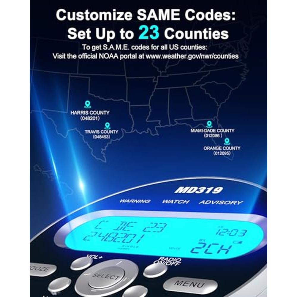 Emergency Emgykit | Emgykit MD319 NOAA Weather Alert Radio with S.A.M.E Localized Programming | 23 County Codes and 80 Emergency Alerts