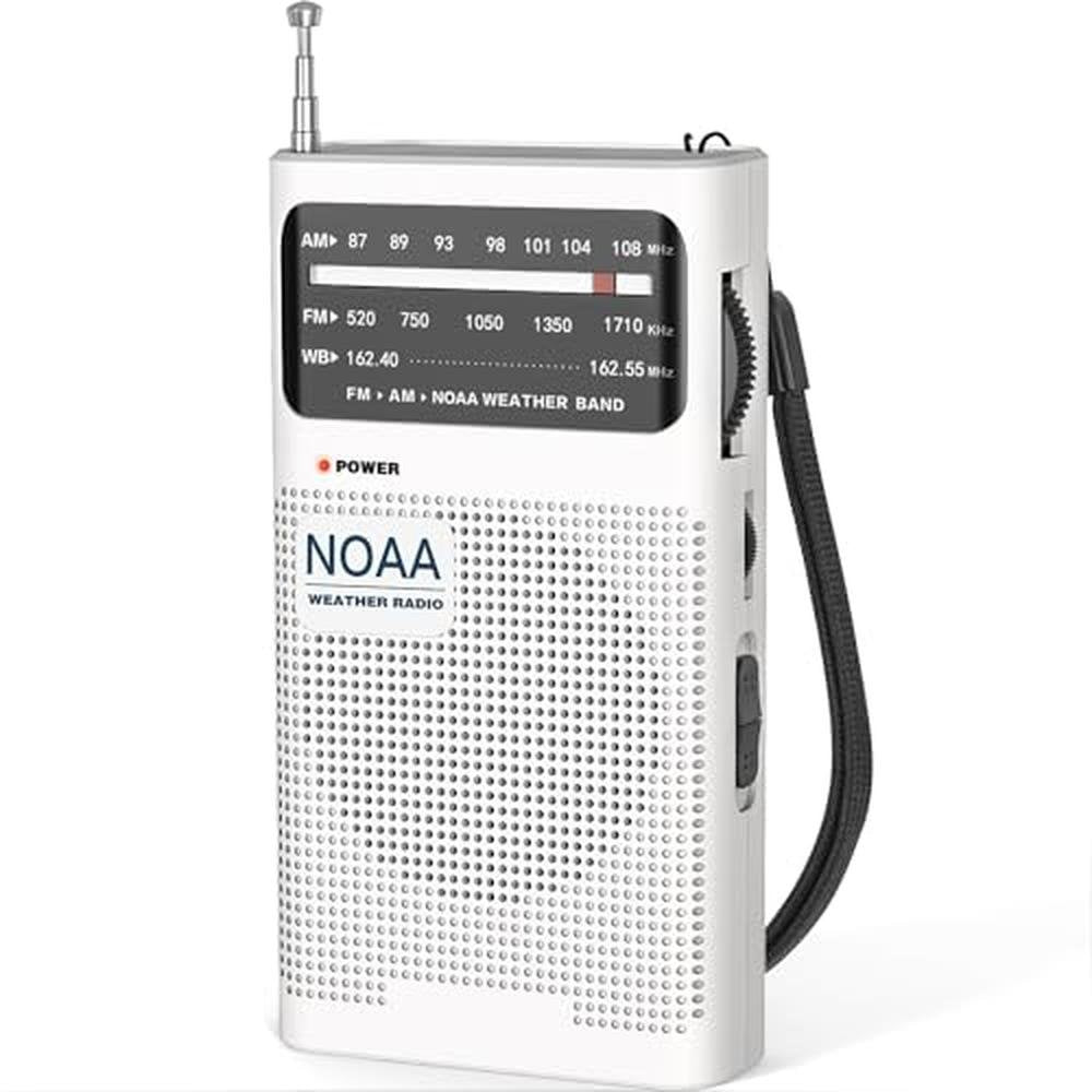 Goodes NOAA Weather Radio with Best Reception, AM FM Portable Radio with 2 AA Battery-Operated, Loud Speaker, Transistor Antenna, Headphone Jack, Perfect for Home, Outdoor, and Emergency Use-White