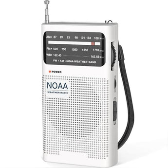 - Portable RadioThis weather radio weighs 125 grams. Lightweight and compact, this portable radio can be carried with you on hiking, camping, sports and other activities, and can easily fit in your pocket or backpack, perfect for home or on the go.Powered by 2 AA batteries (not included), you can easily find it in the shop or at home, and you don't need to worry about even if there is a power outage.