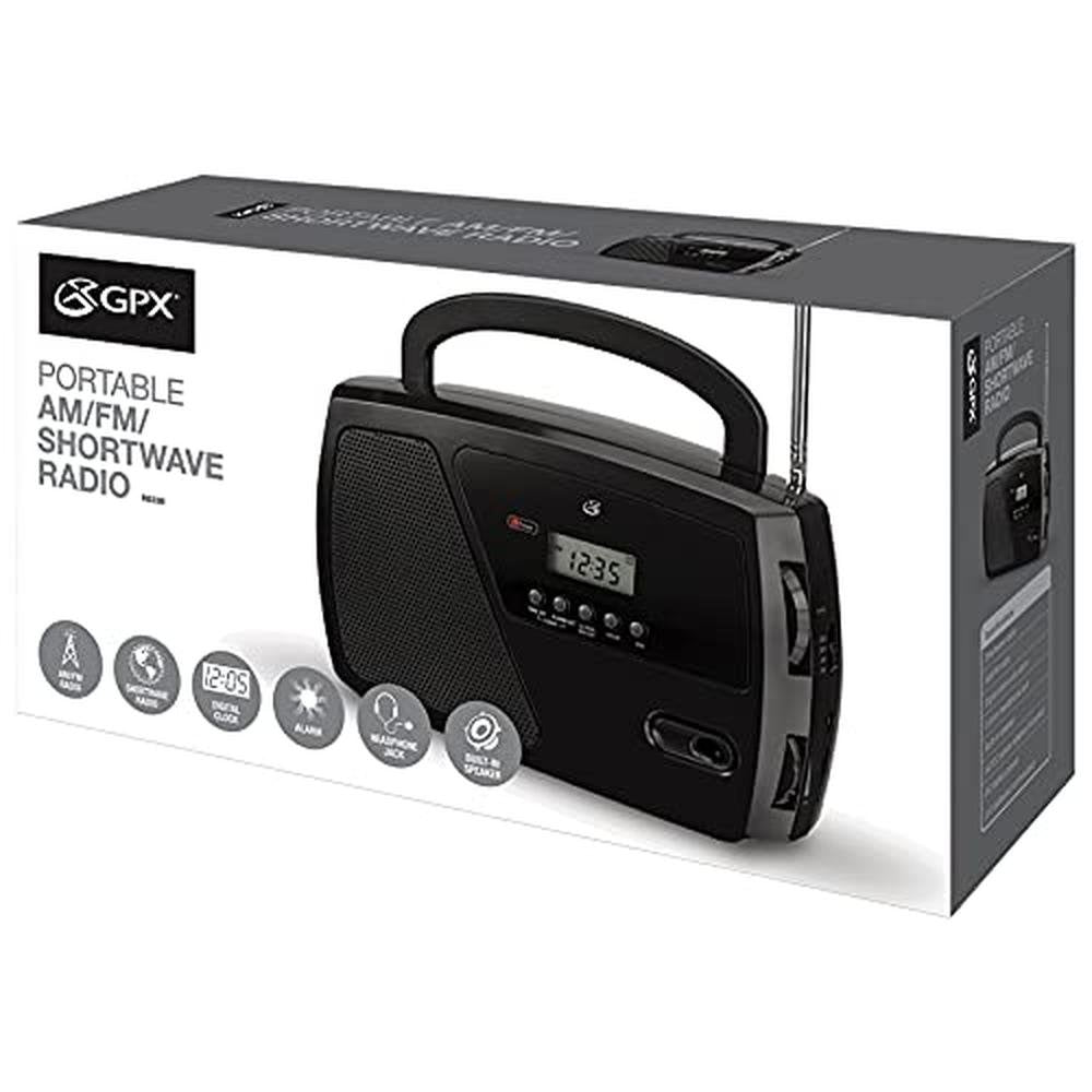GPX R633B Portable Shortwave AM/FM Clock Radio (Black)