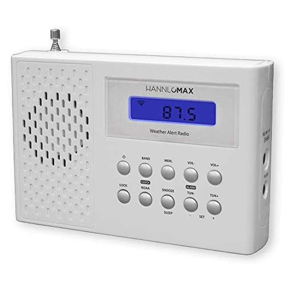 HANNLOMAX HX-512R Portable AM/FM/Weather Alert Radio, Alarm Clock, LCD Display, Headphone Jack, AC/DC Dual Power Source. (White)