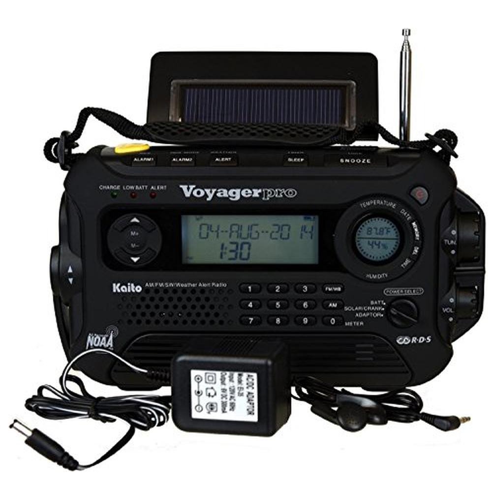 Kaito Voyager Pro KA600 Digital Solar Dynamo Hand Crank AM/FM/LW/SW & NOAA Weather Emergency Radio with Flashlight, Reading Lamp,Smart Phone Charger & RDS and Real-Time Alert, with AC Adapter, Black