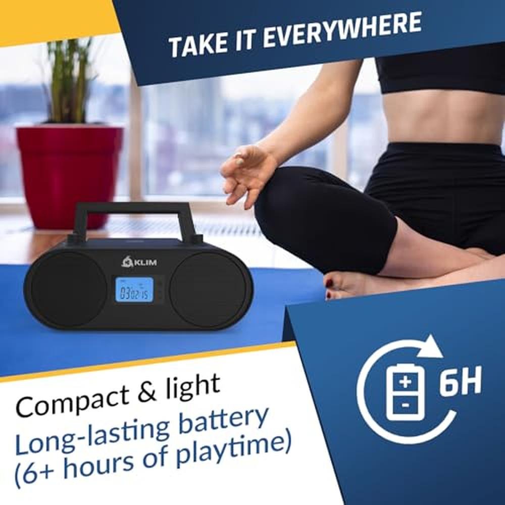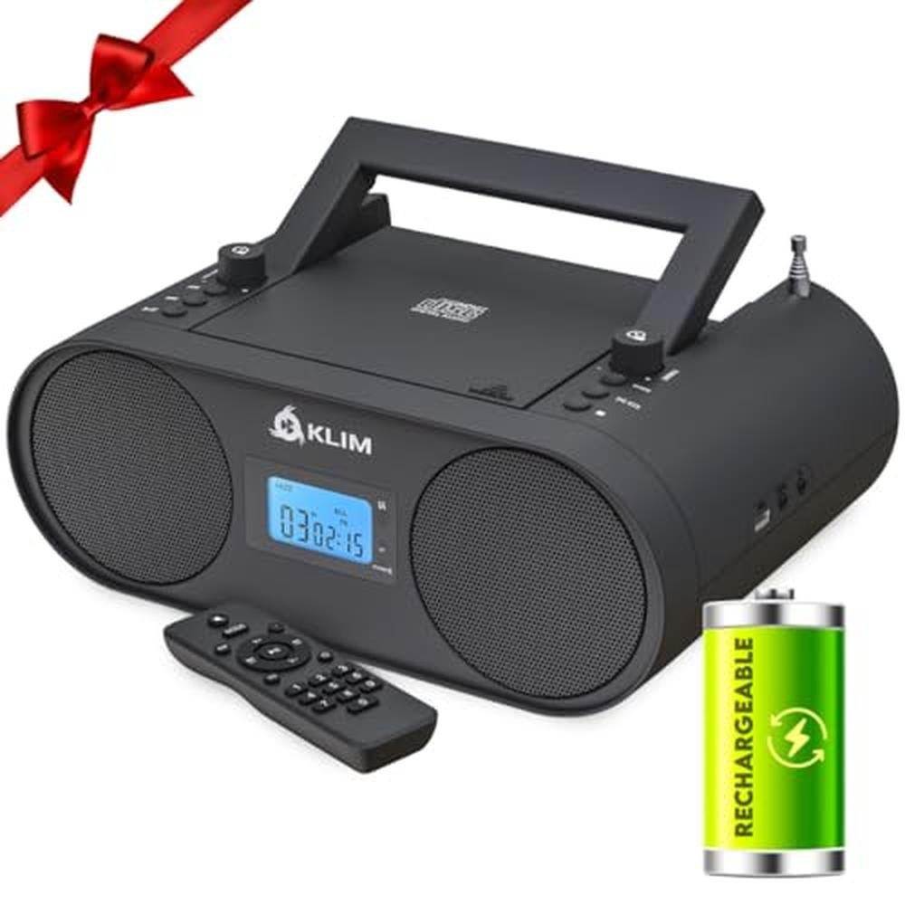 KLIM Boombox B4 | Portable CD Player with AM/FM Radio, MP3, Bluetooth, and AUX | Rechargeable Battery and Remote Control